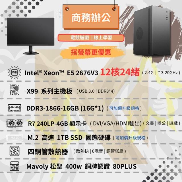 Intel 英特爾十二核4G獨顯 Randeon R7 240LP 4G{辦公首選}文書主機(12核/32GB/1TB SSD)