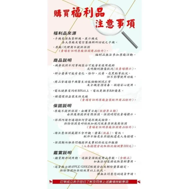 • 商品到貨享十天猶豫期之權益(注意!猶豫期非試用期),依法辦理退貨商品必須是全新狀態且包裝完整(包含主機、附件、內外包裝、隨機文件、贈品等)。如商品一經拆封或使用致商品價值受損(例僅得以福利品出售),商店將向消費者就商品一部或全部價值減損收取適當之費用(回復原狀、整新費),否則將影響退貨的權限。請先確認商品正確、外觀可接受,再行開機/使用,以免影響您的權利,祝您購物順心。