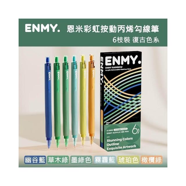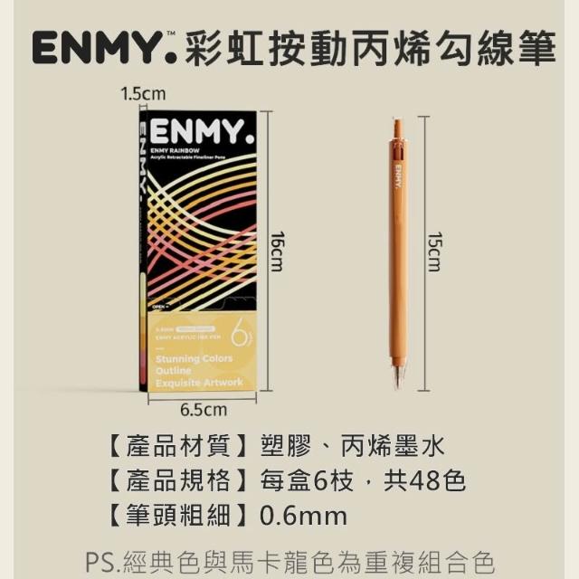 ENMY恩米 彩虹丙烯勾線筆 按動筆 0.6mm 丙烯筆 手帳筆 6枝裝 10色系 共48色