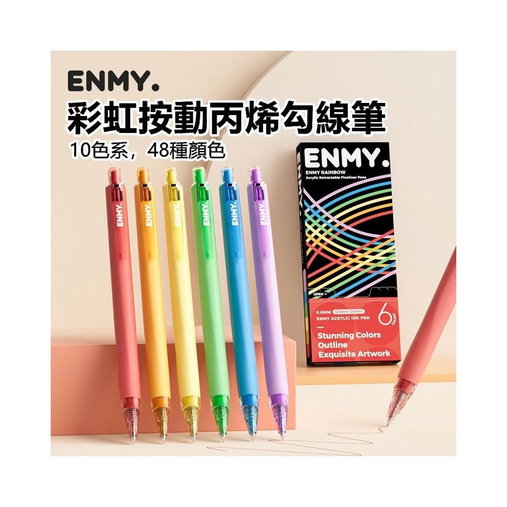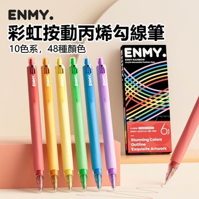 ENMY恩米 彩虹丙烯勾線筆 按動筆 0.6mm 丙烯筆 手帳筆 6枝裝 10色系 共48色