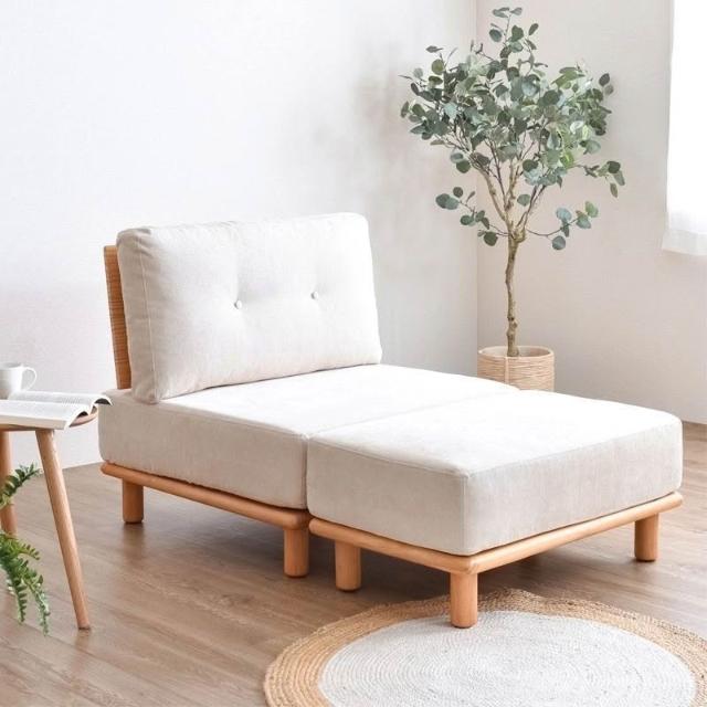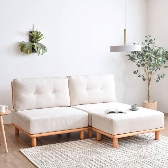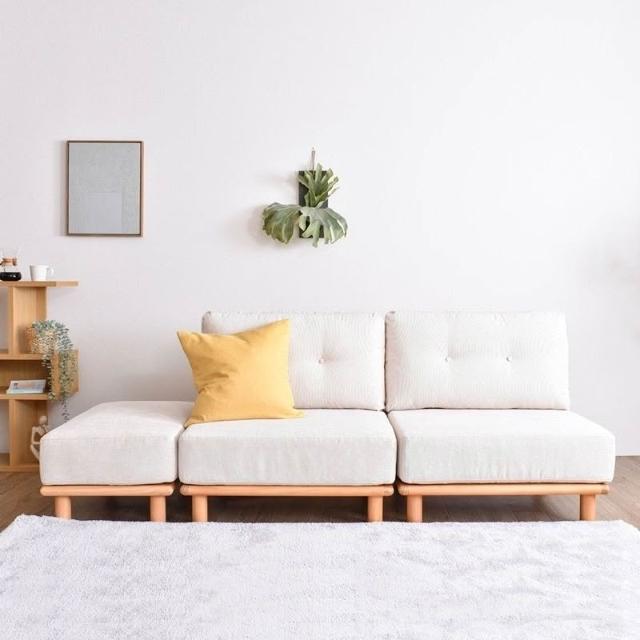 日式實木軟包布藝沙發單人直排組閤靠背椅腳踏出租房小戶型簡易風