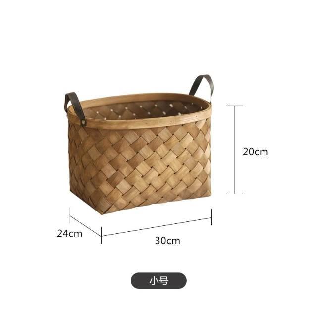 手工木片編織籃竹編竹籃子手提收納籃桌面收納筐菜籃購物籃野餐籃