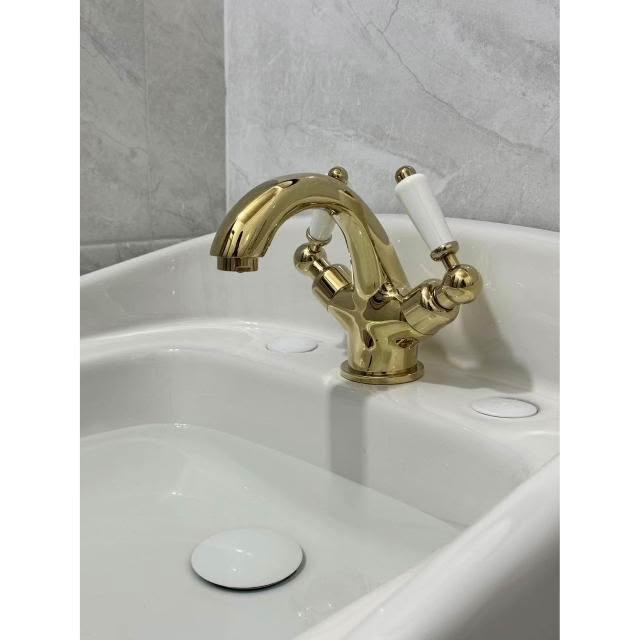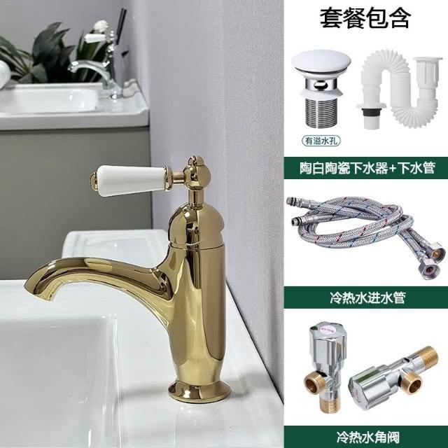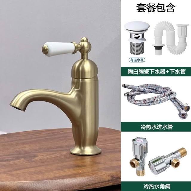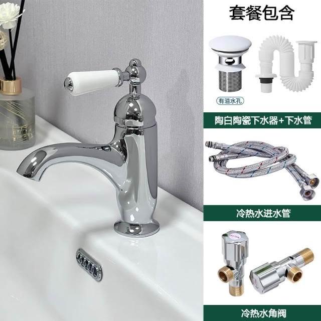 出口英國臺盆龍頭冷熱全銅洗手盆陶瓷把手英式復古面盆龍頭