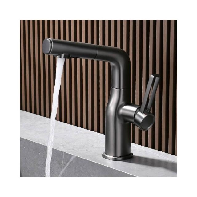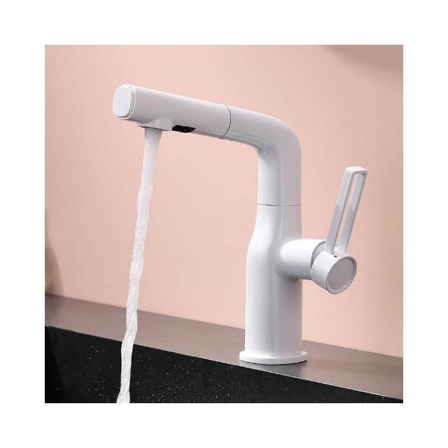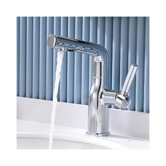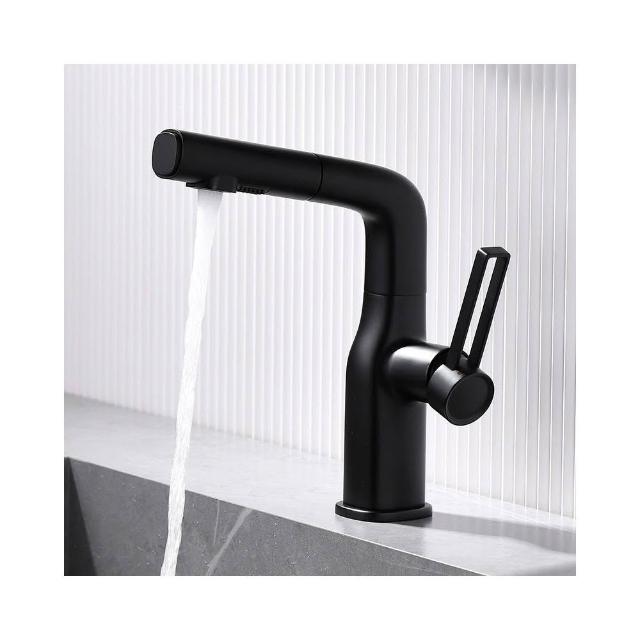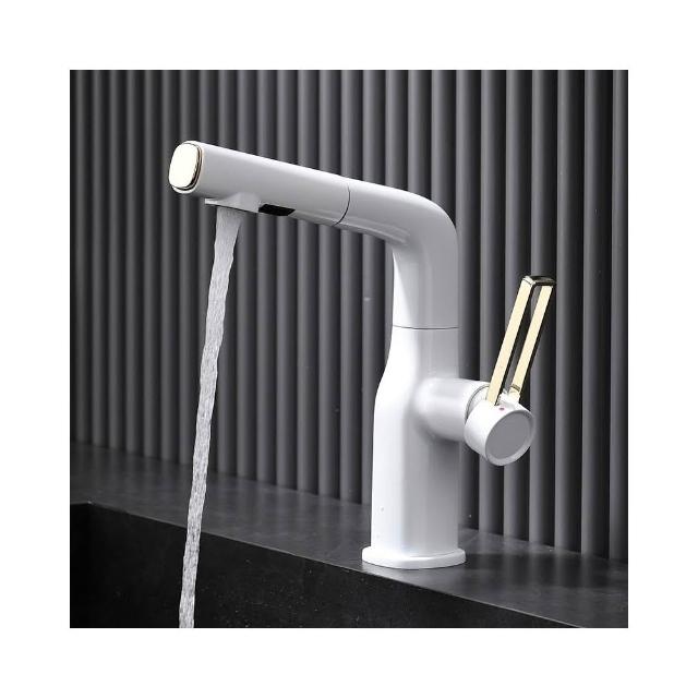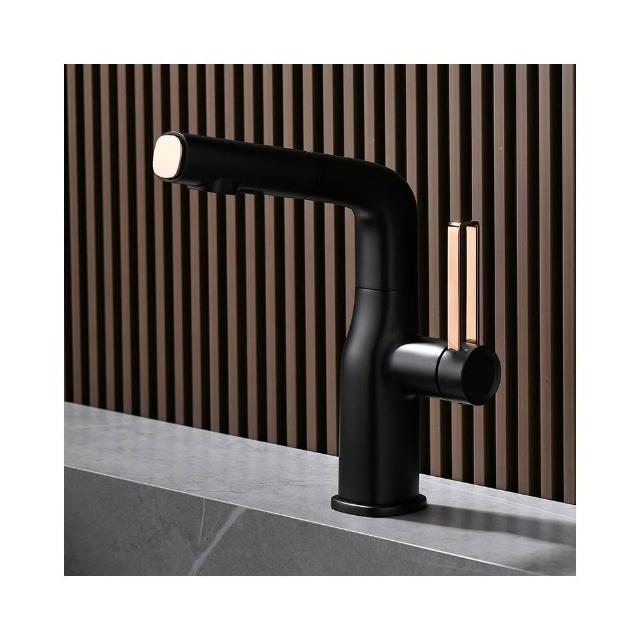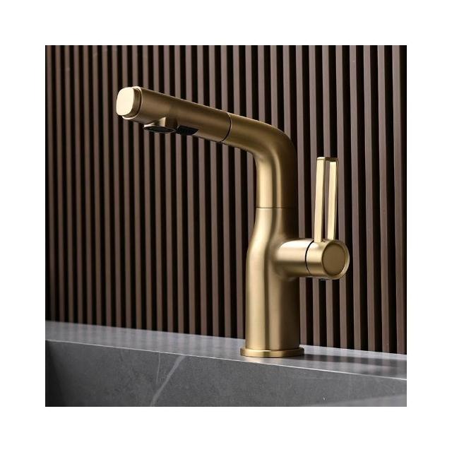 抽拉式冷熱水龍頭衛生間洗臉盆面盆可旋轉可升降伸縮全銅金色