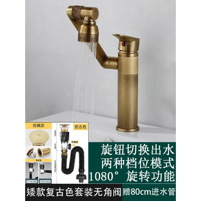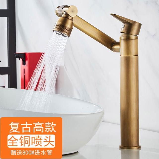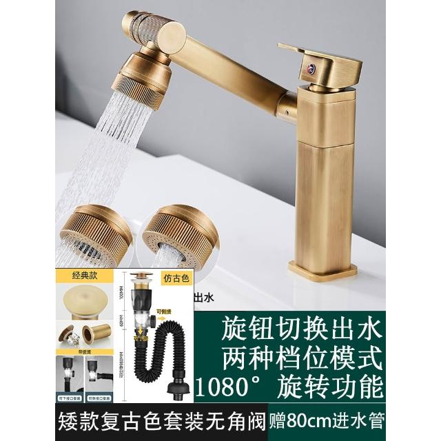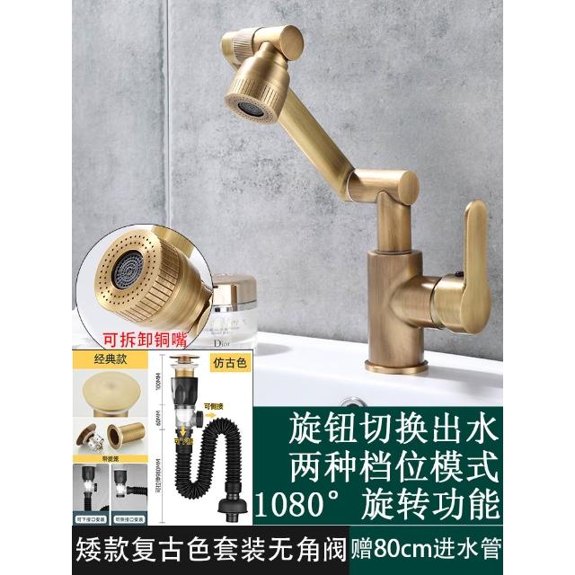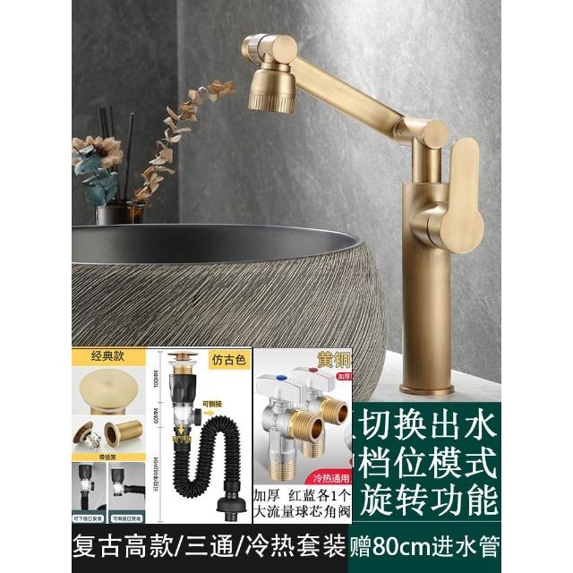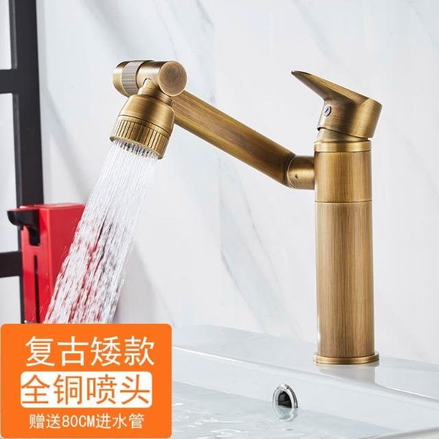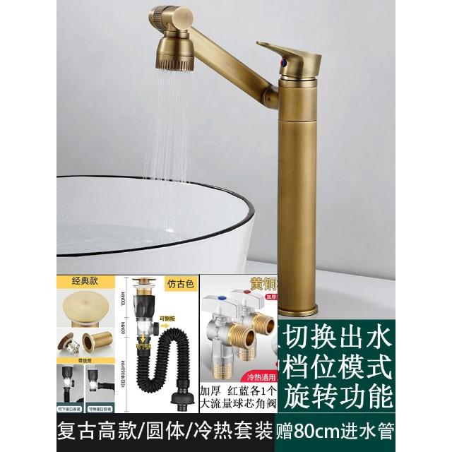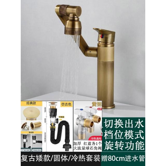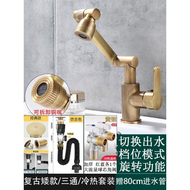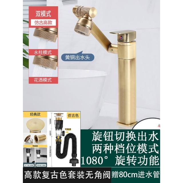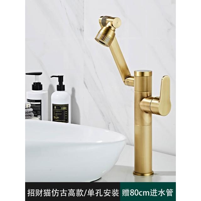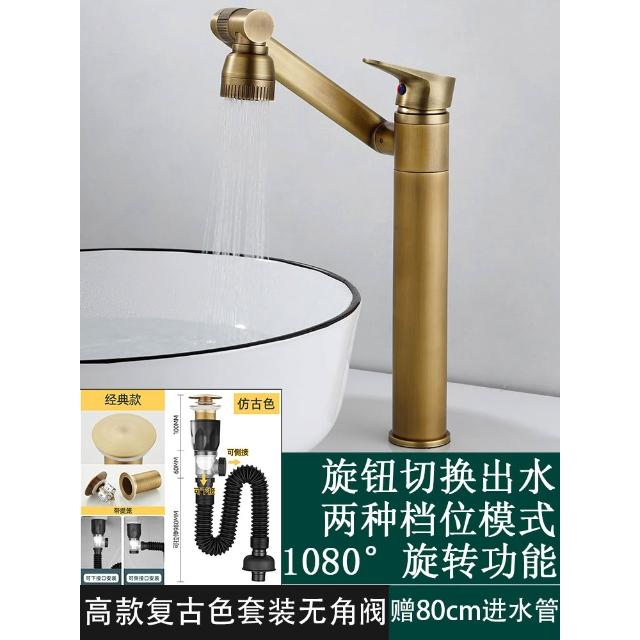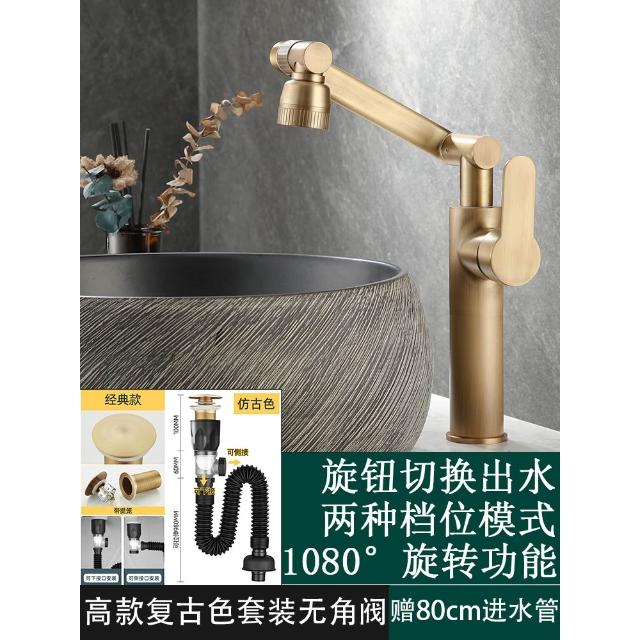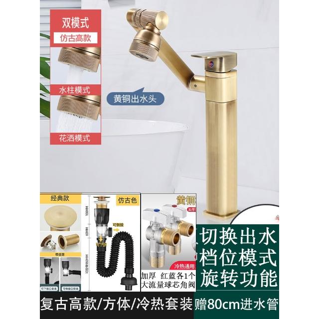 萬向全銅仿古水龍頭衛生間面盆洗手盆冷熱臺上盆洗漱臉池復古加高