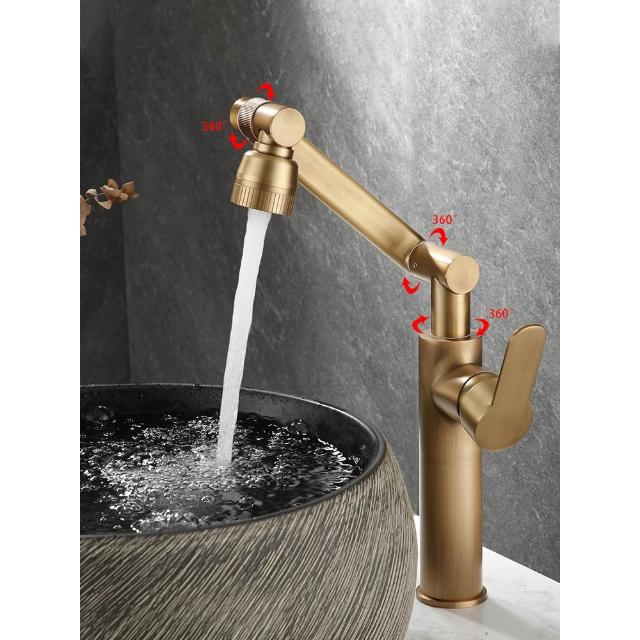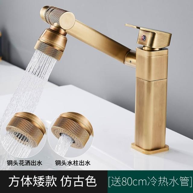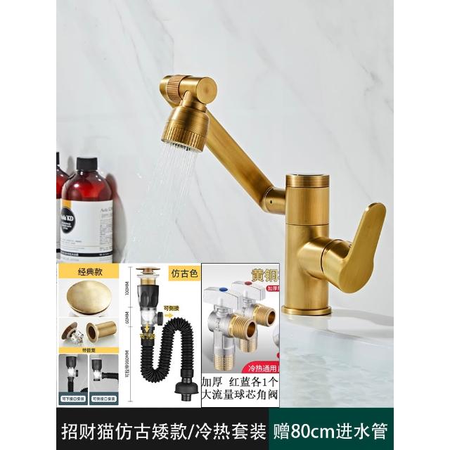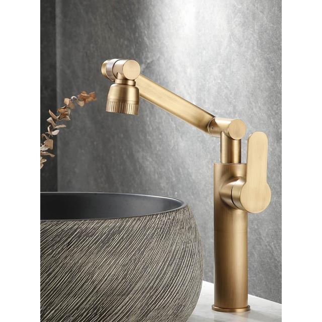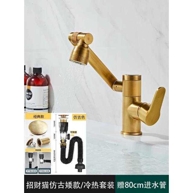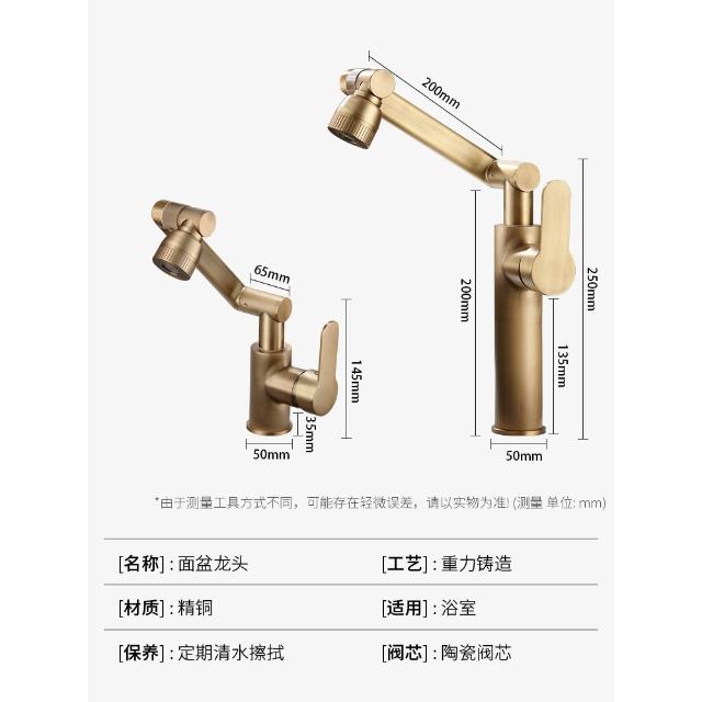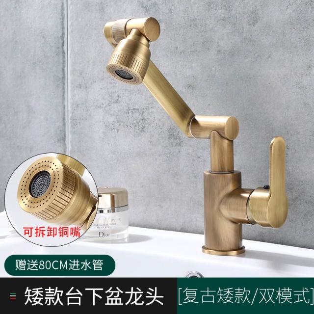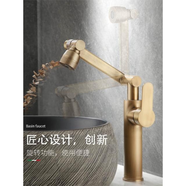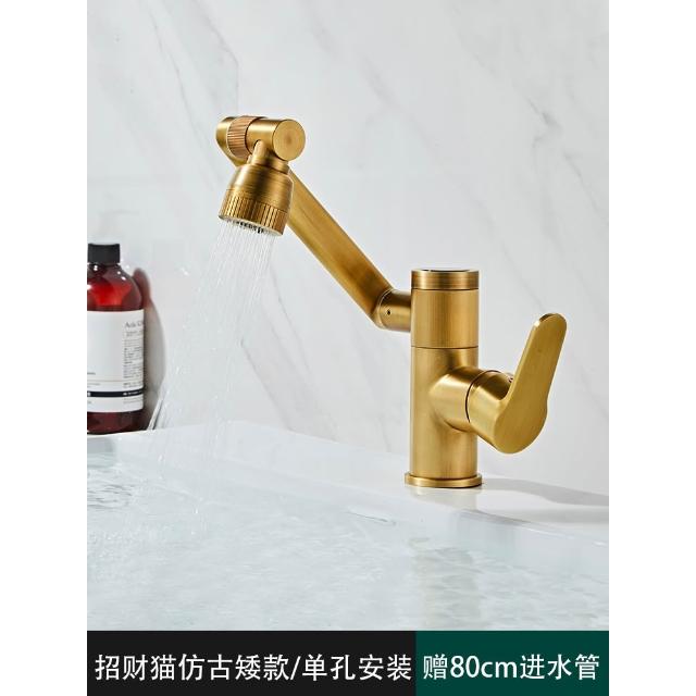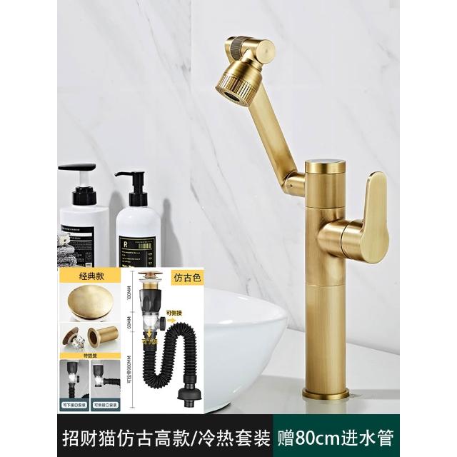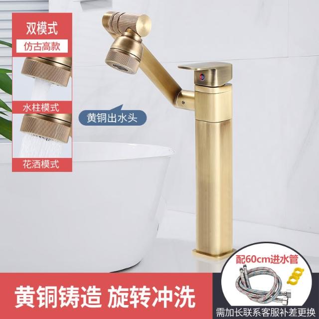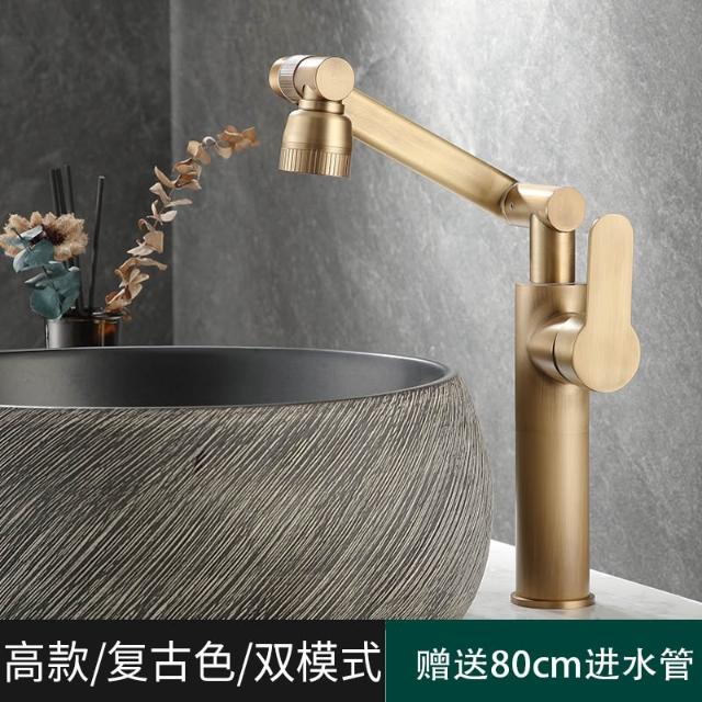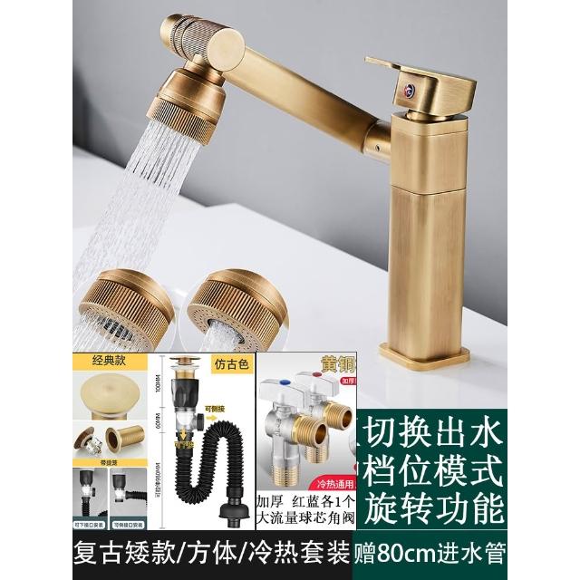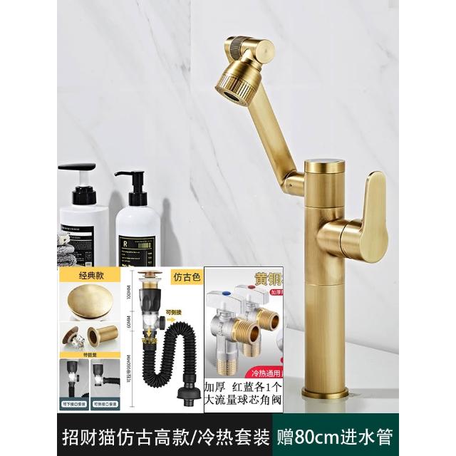 萬向全銅仿古水龍頭衛生間面盆洗手盆冷熱臺上盆洗漱臉池復古加高