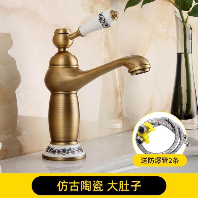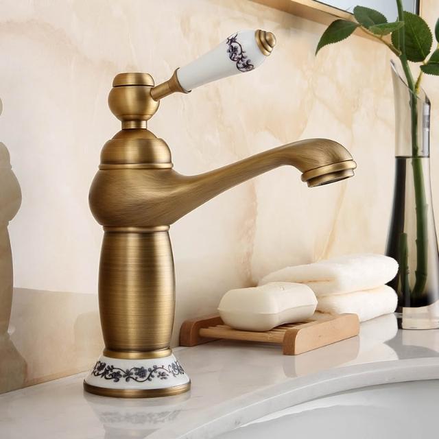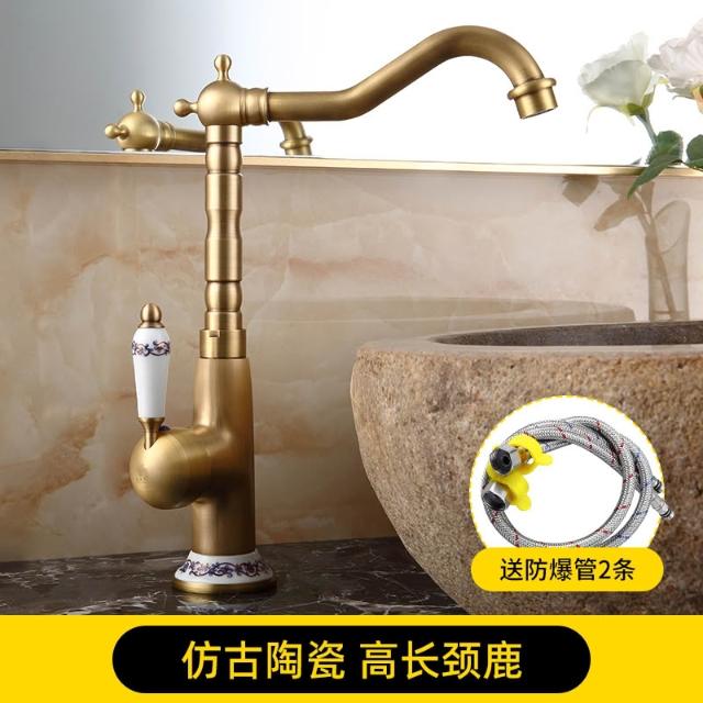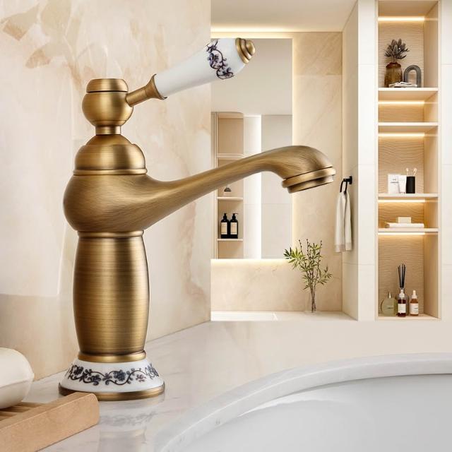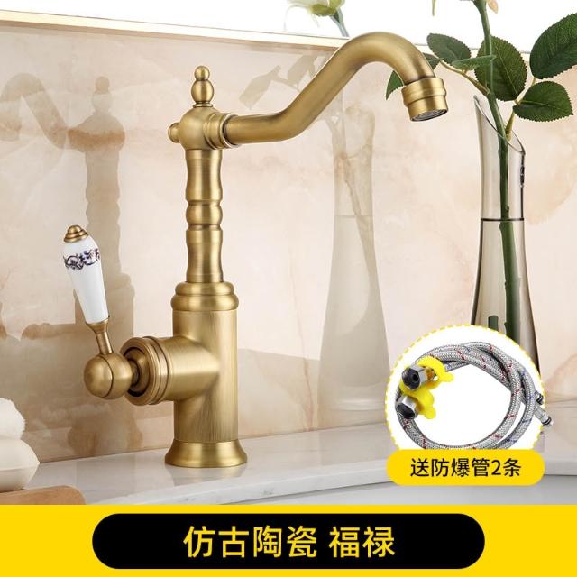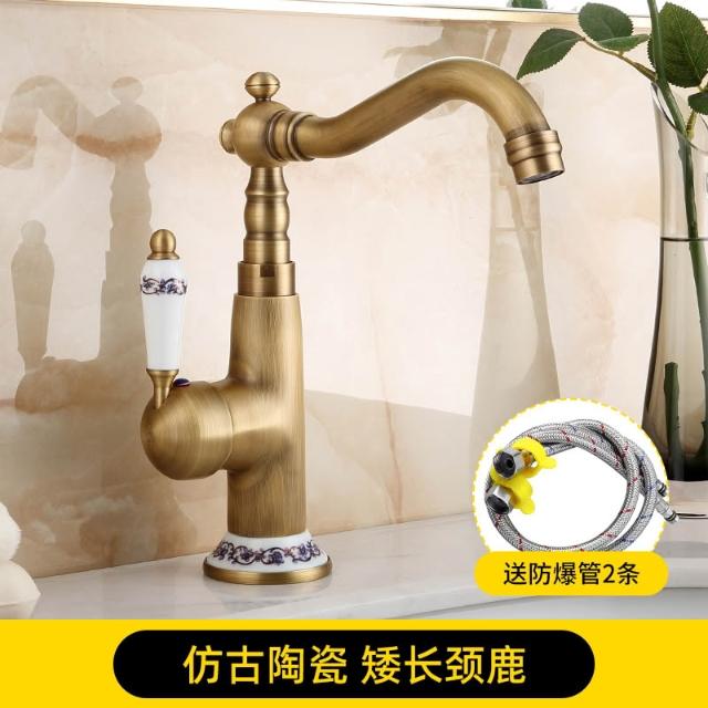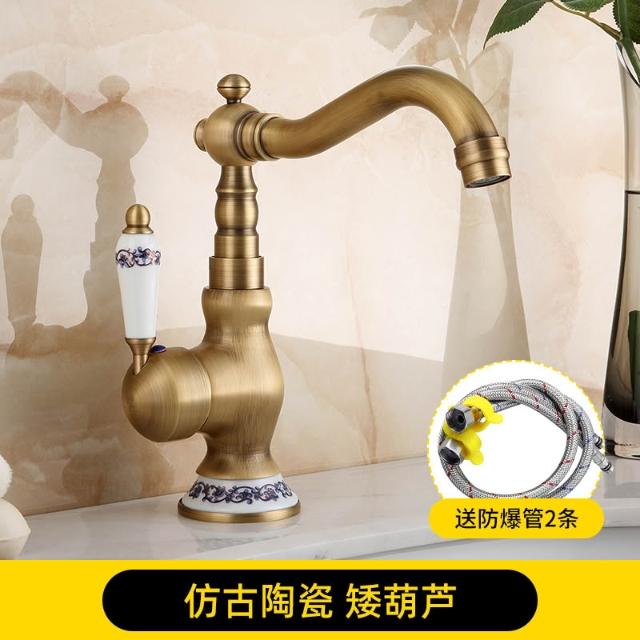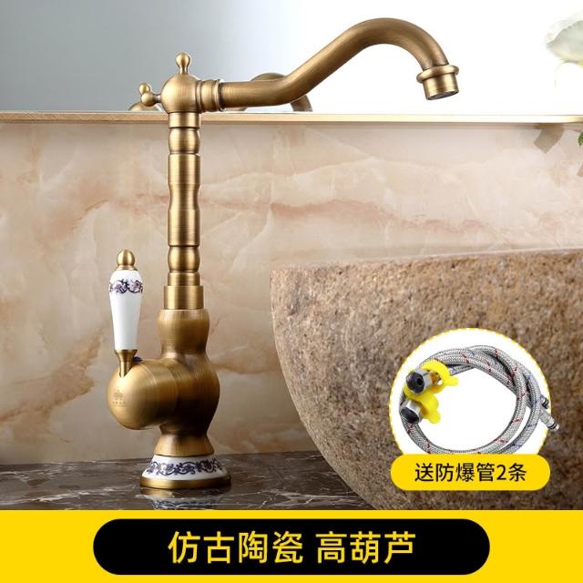 仿古面盆水龍頭全銅可旋轉歐式復古衛生間洗臉盆冷熱出水單把單孔