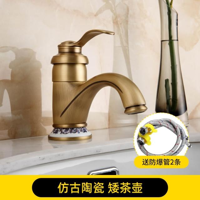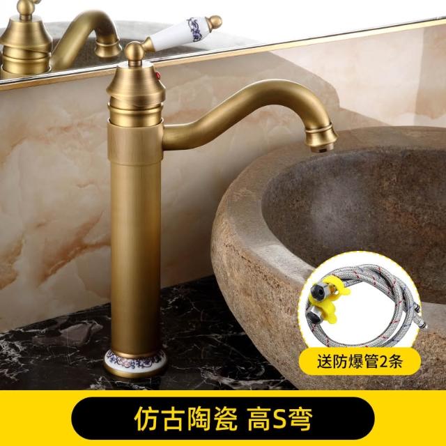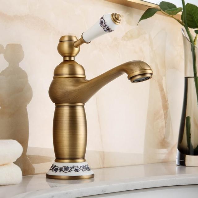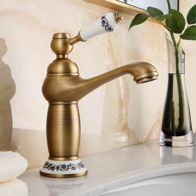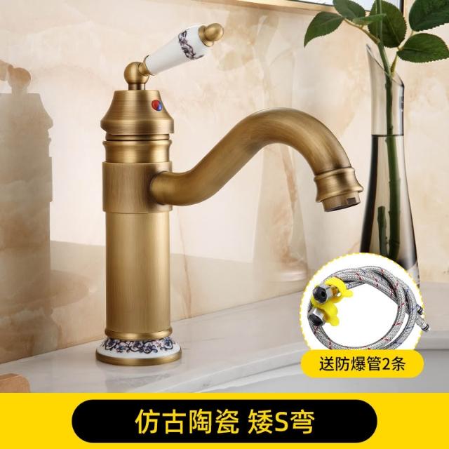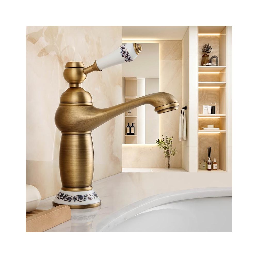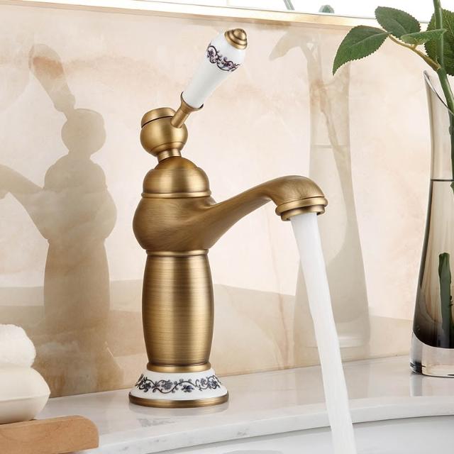 仿古面盆水龍頭全銅可旋轉歐式復古衛生間洗臉盆冷熱出水單把單孔