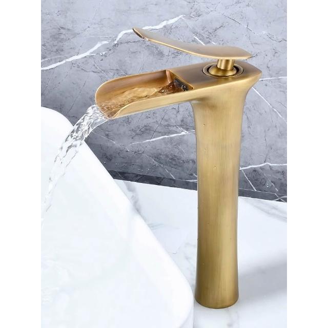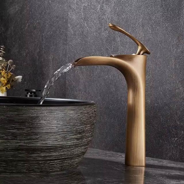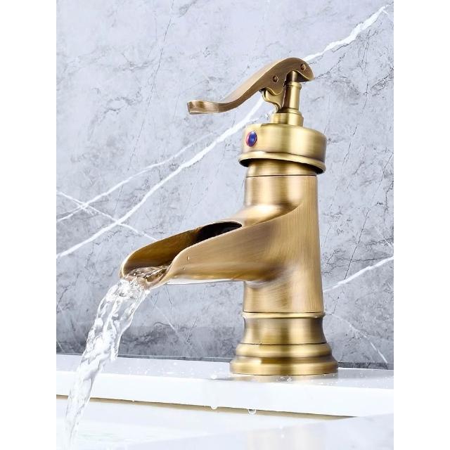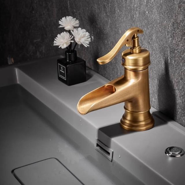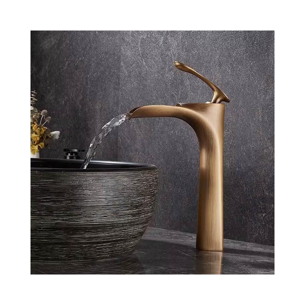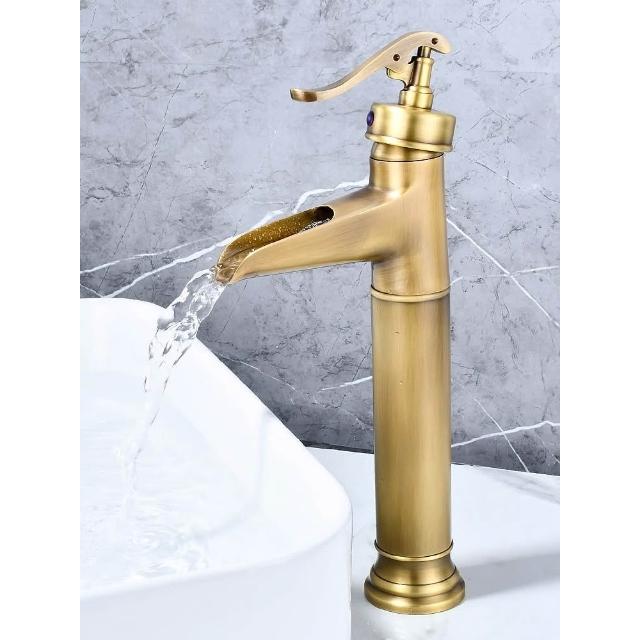 瀑布全銅復古水龍頭冷熱衛生間洗臉面盆臺上盆仿古加高洗手池歐式