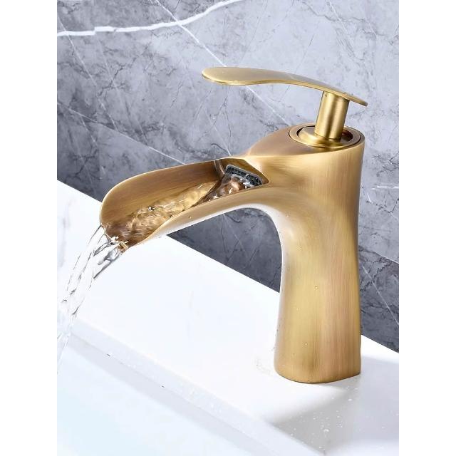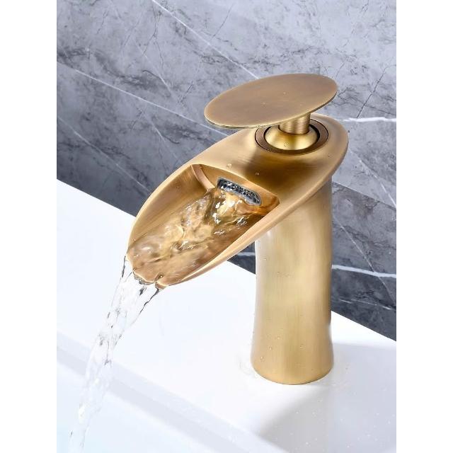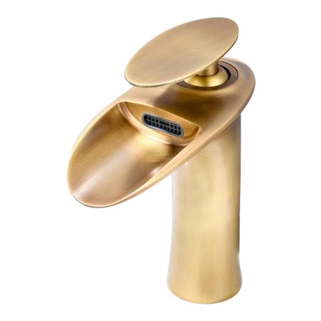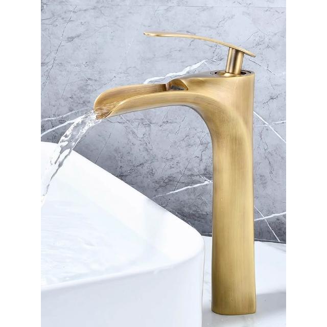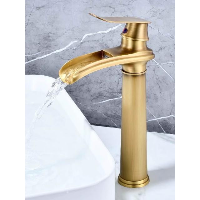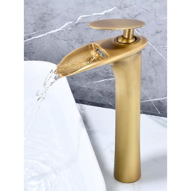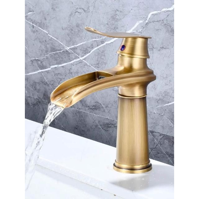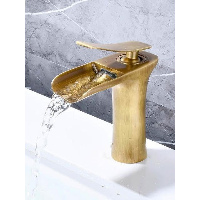 瀑布全銅復古水龍頭冷熱衛生間洗臉面盆臺上盆仿古加高洗手池歐式