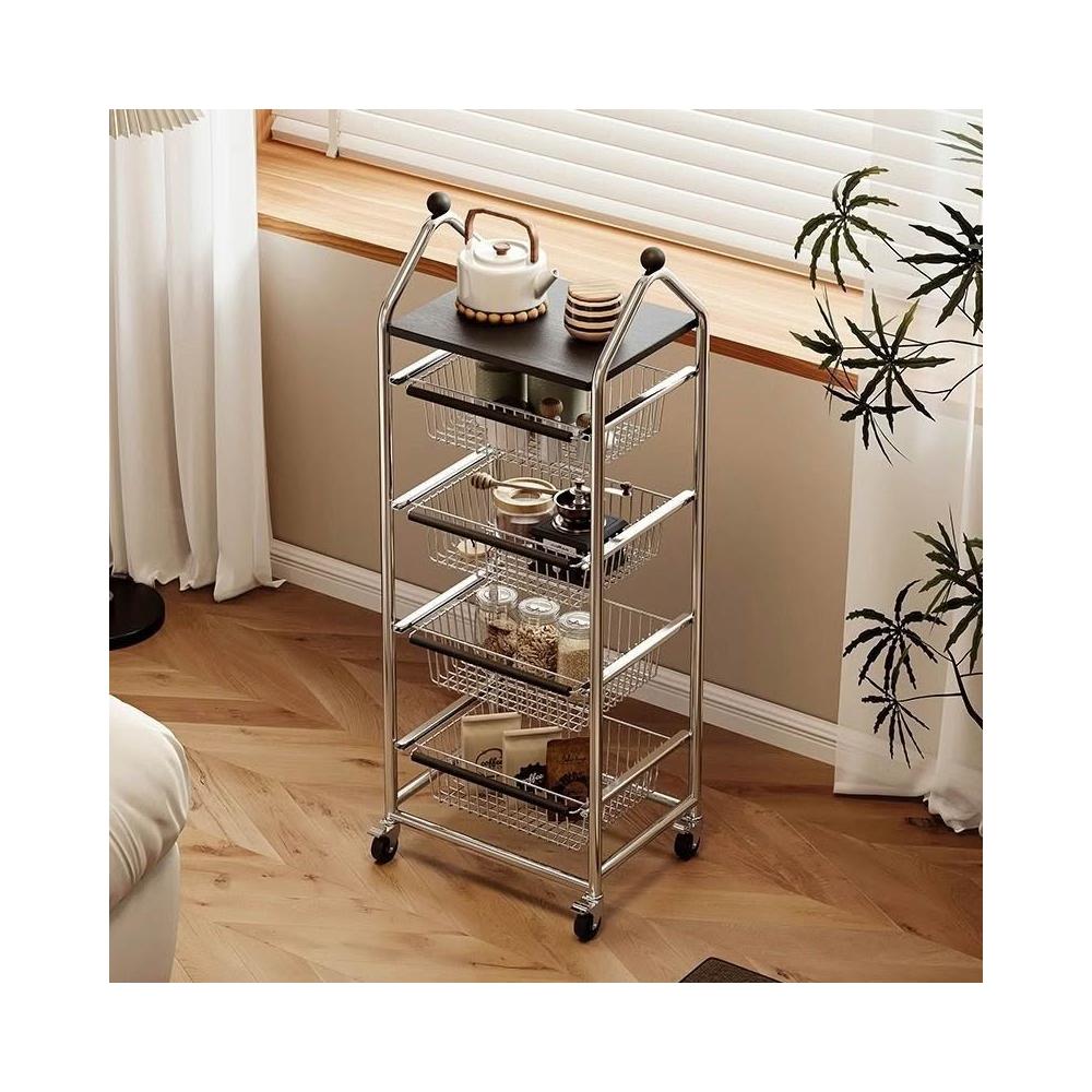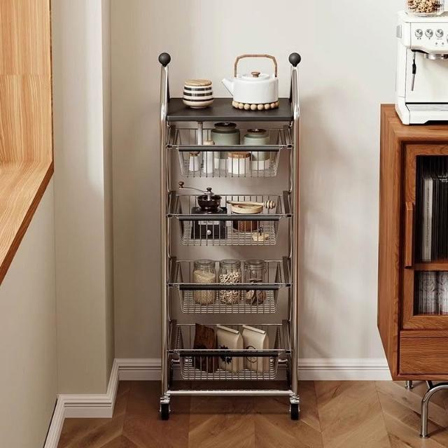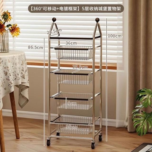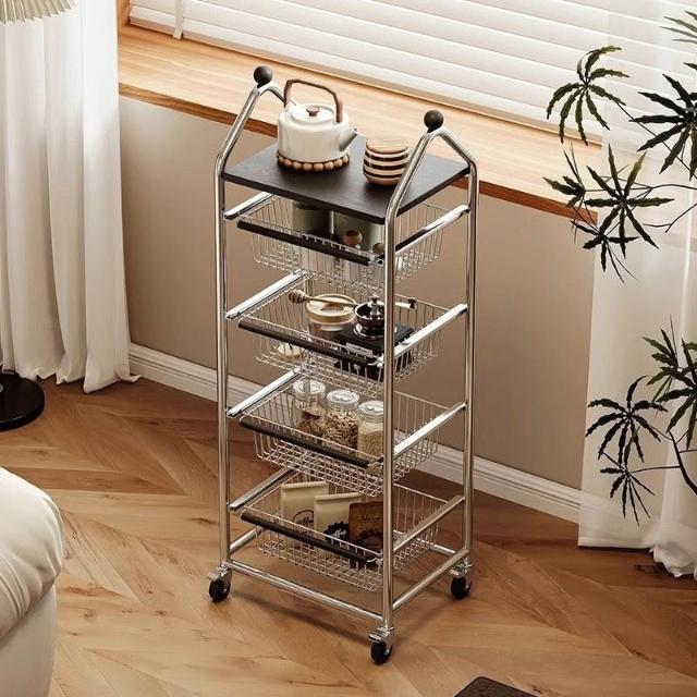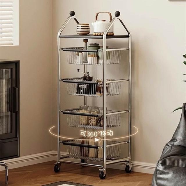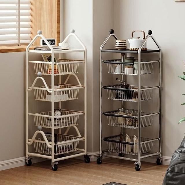置物架 收納架 中古置物架落地客廳小推車移動零食收納架家用廚房蔬菜多層儲物架