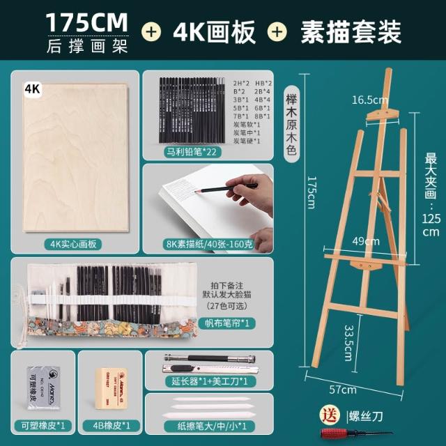 畫架美術生專用木質畫板架子素描油畫三角後撐抽屜展示架便攜折疊伸縮櫸木實木支架式兒童畫室畫畫架畫板套裝