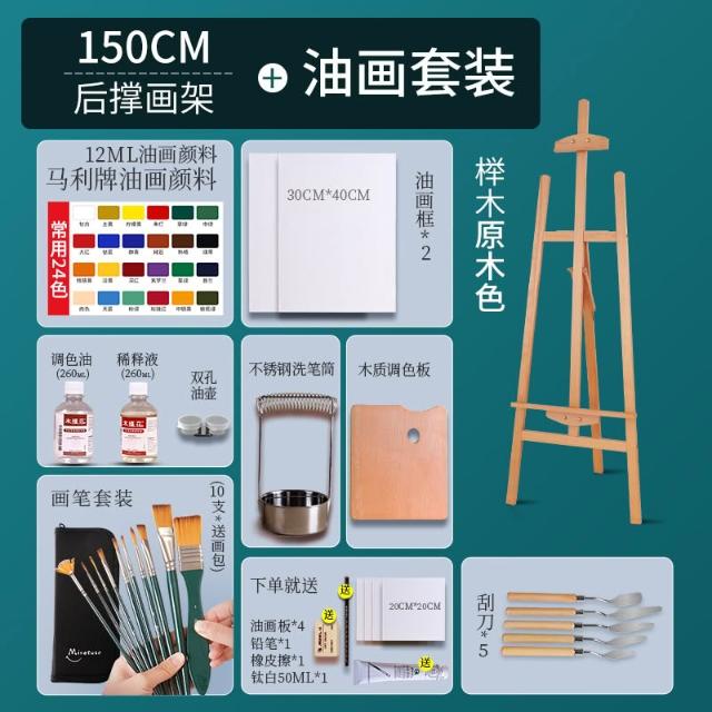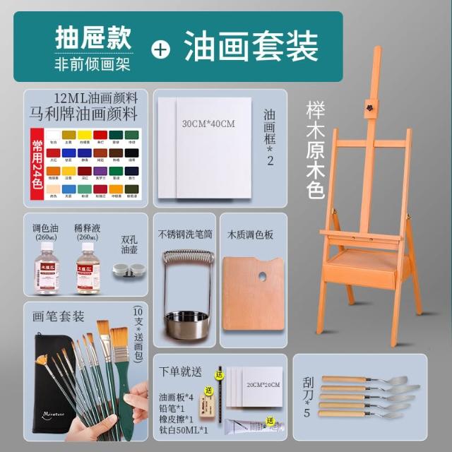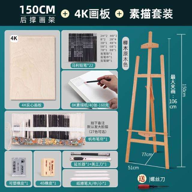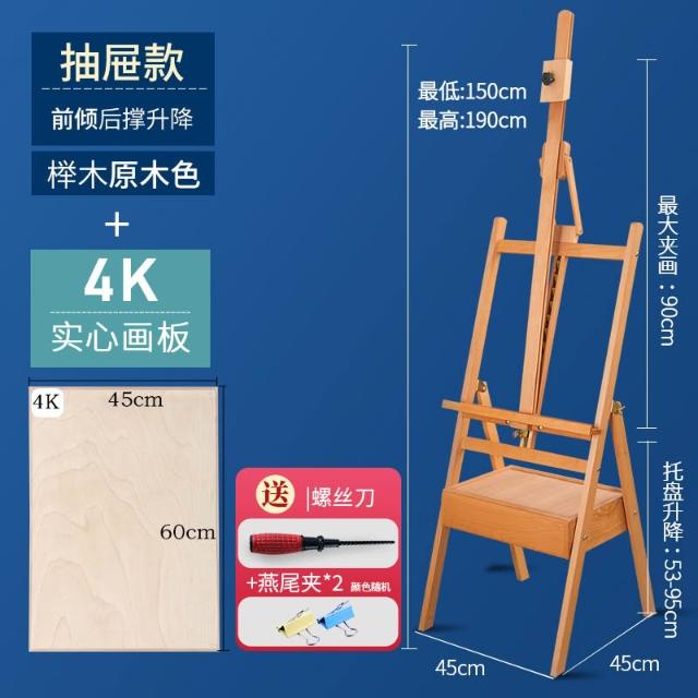 畫架美術生專用木質畫板架子素描油畫三角後撐抽屜展示架便攜折疊伸縮櫸木實木支架式兒童畫室畫畫架畫板套裝