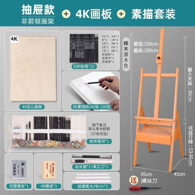 畫架美術生專用木質畫板架子素描油畫三角後撐抽屜展示架便攜折疊伸縮櫸木實木支架式兒童畫室畫畫架畫板套裝