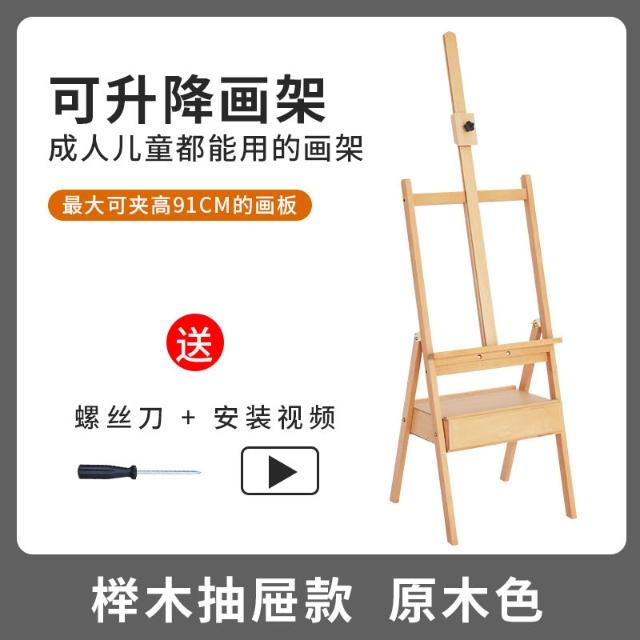 櫸木制美術生專用抽屜式可折疊平放成人兒童畫板架套裝素描油畫架