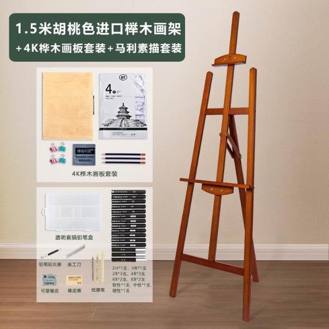 復古畫架美術生專用畫板架支架可攜式折疊兒童油畫架實木制素描寫生水彩美術畫架畫板畫架初學者套裝
