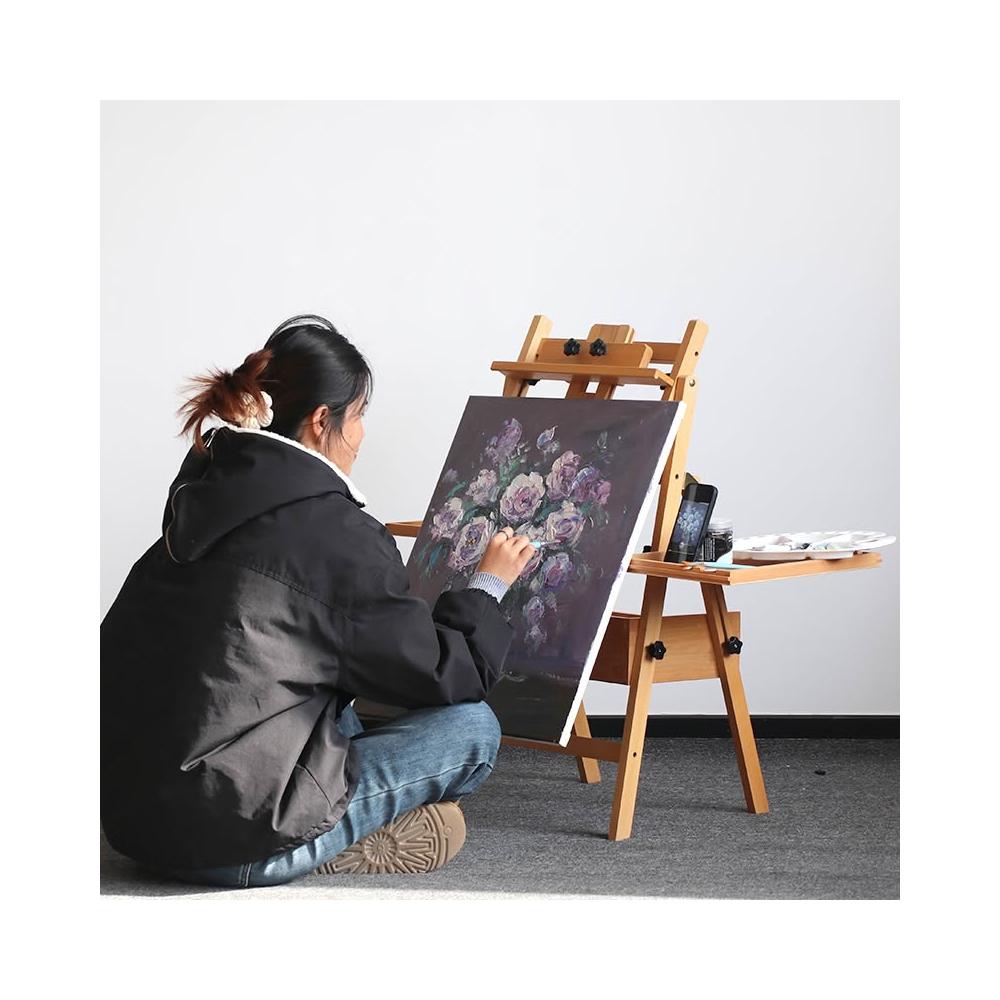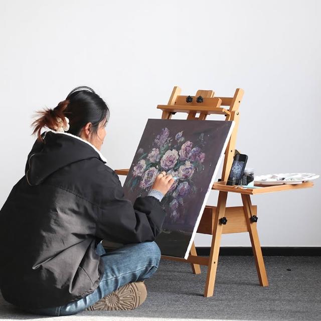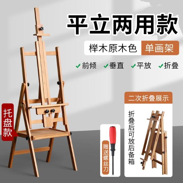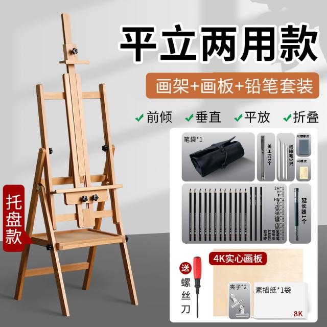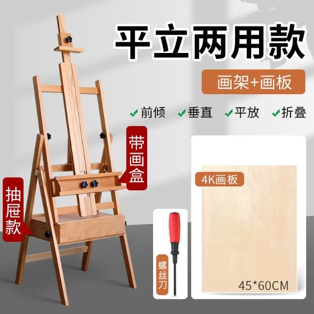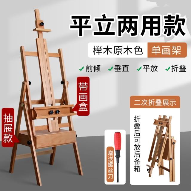 櫸木制畫架美術生專用可折疊平立兩用抽屜置物盤素描套裝油畫畫架