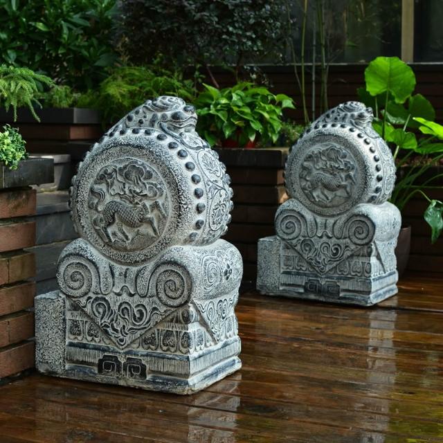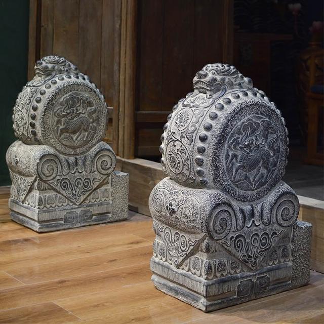 中式仿古禪意抱鼓石仿石雕工藝品別墅庭院大門口門墩裝飾門當戶對