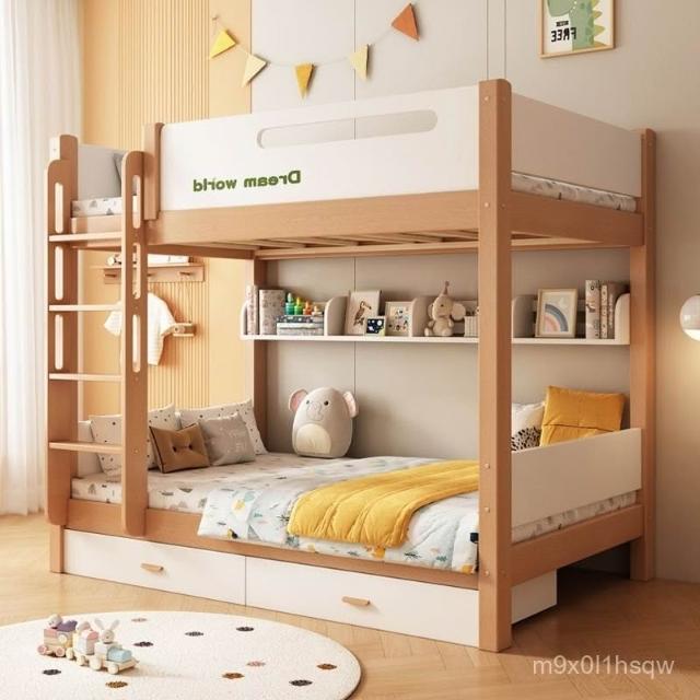 免運 兒童床子母床小戶型高低床大人成人上下鋪 全實木櫸木上下床雙層床 上下舖床架 樓梯床 上下床鋪 宿捨床
