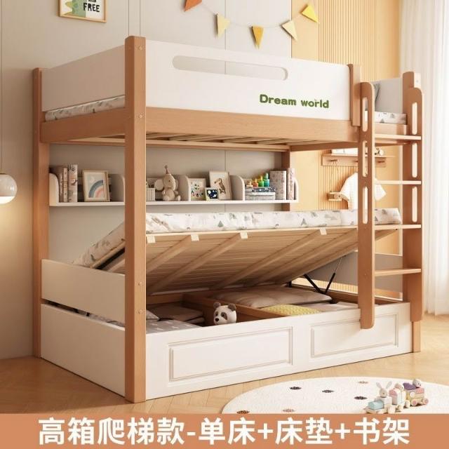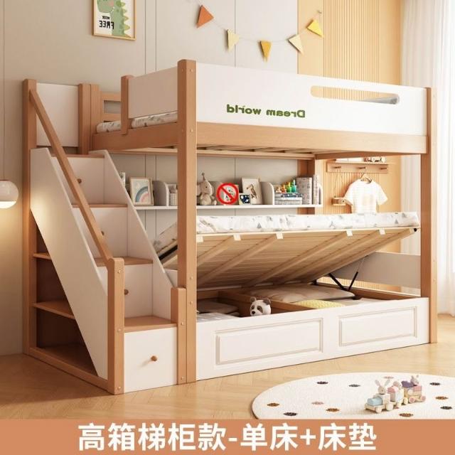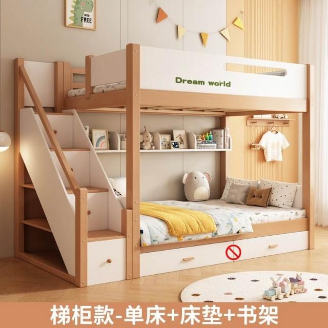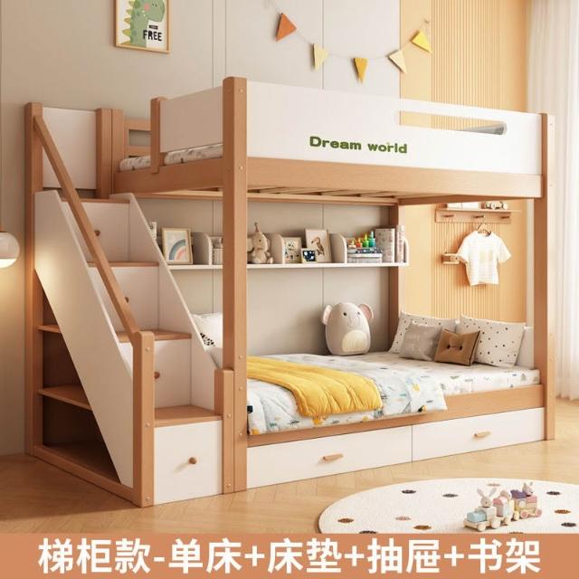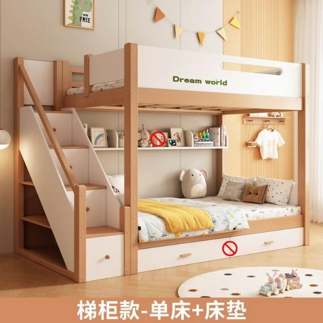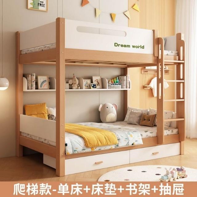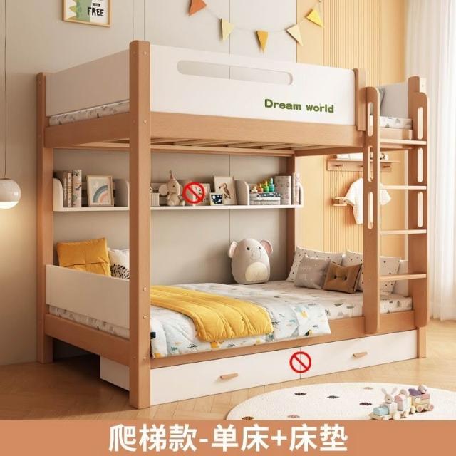 免運 兒童床子母床小戶型高低床大人成人上下鋪 全實木櫸木上下床雙層床 上下舖床架 樓梯床 上下床鋪 宿捨床