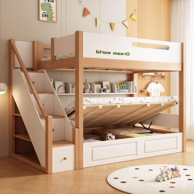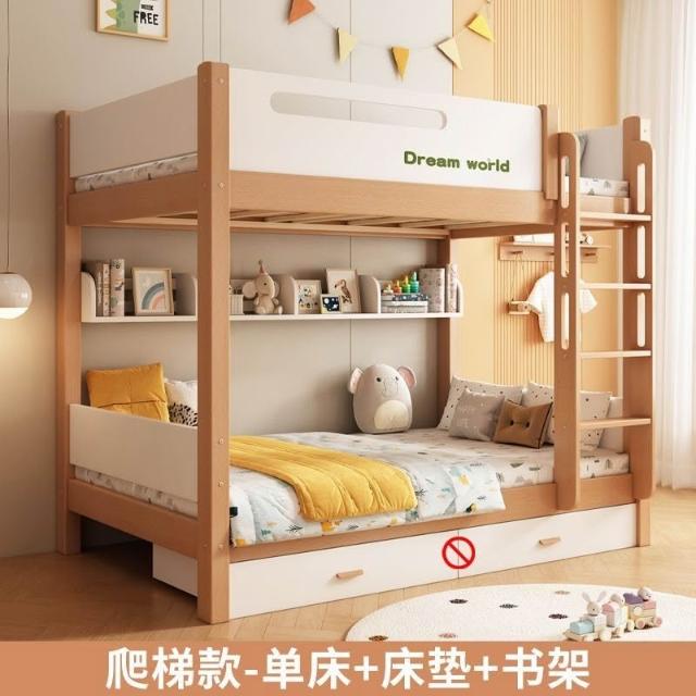 免運 兒童床子母床小戶型高低床大人成人上下鋪 全實木櫸木上下床雙層床 上下舖床架 樓梯床 上下床鋪 宿捨床