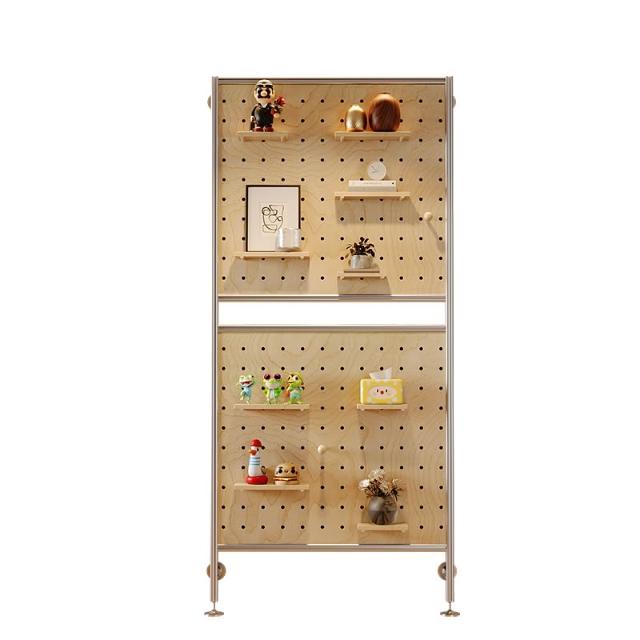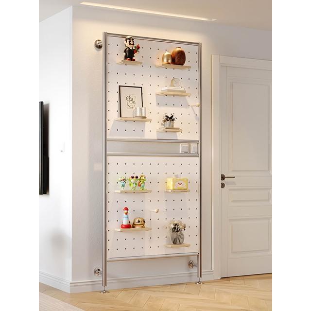 極簡鋁型材洞洞板樺木海洋板屏風頂天立地免打孔多層屏風裝飾隔斷