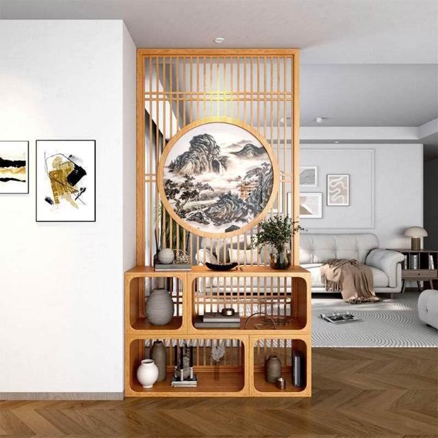 新中式屏風隔斷客廳入戶玄關櫃遮擋簡約頂天立地實木格柵小戶型