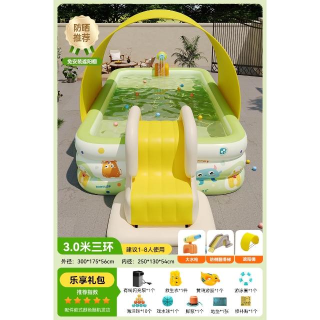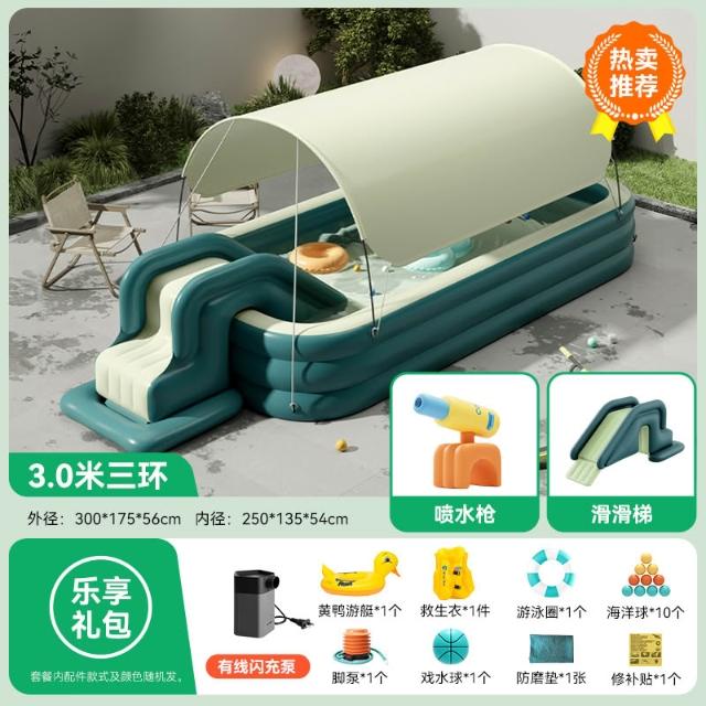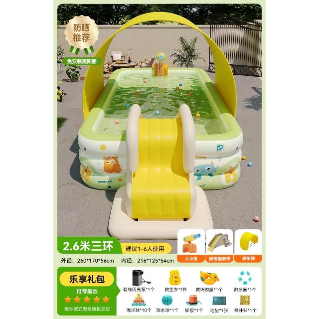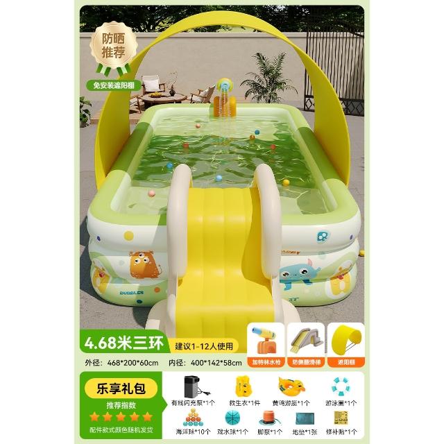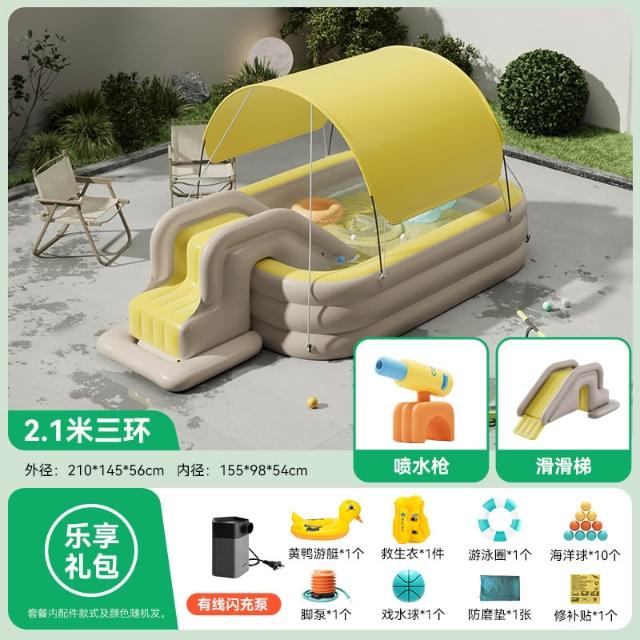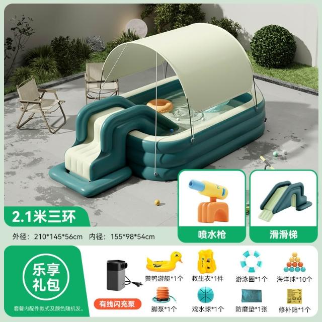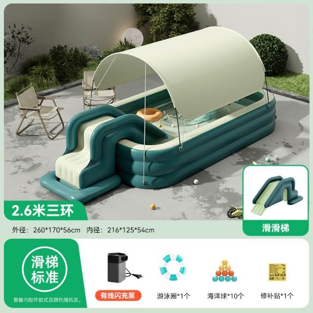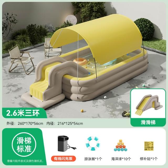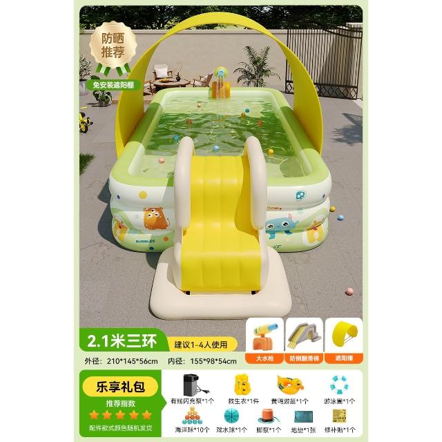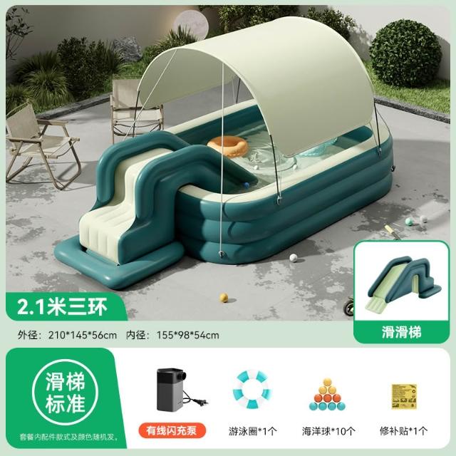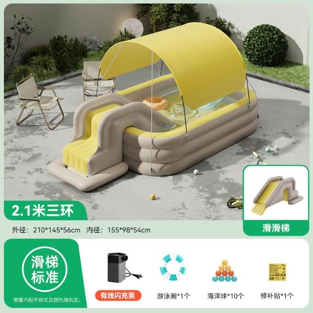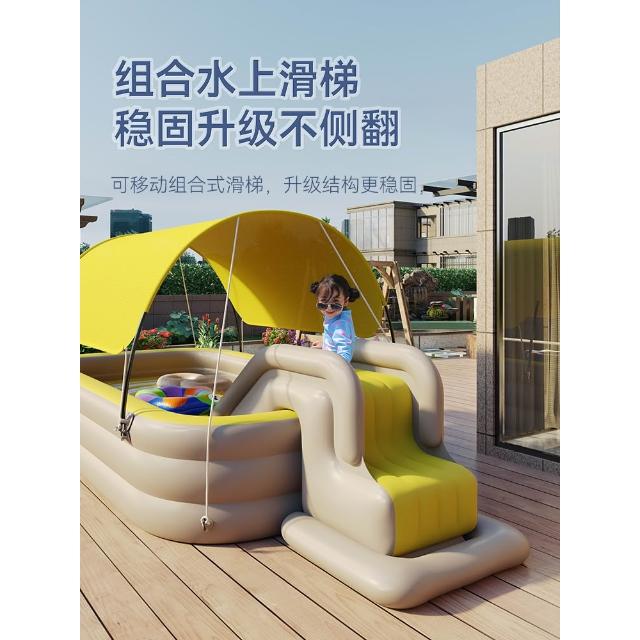 兒童游泳池家用戶外帶遮陽棚滑滑梯嬰兒寶寶可折疊大型充氣水池