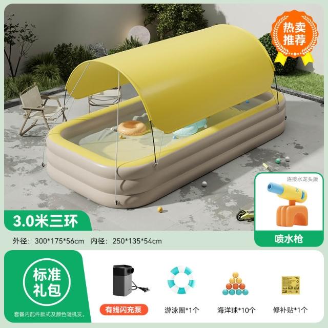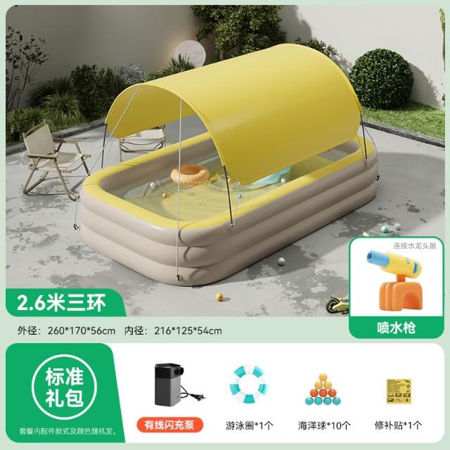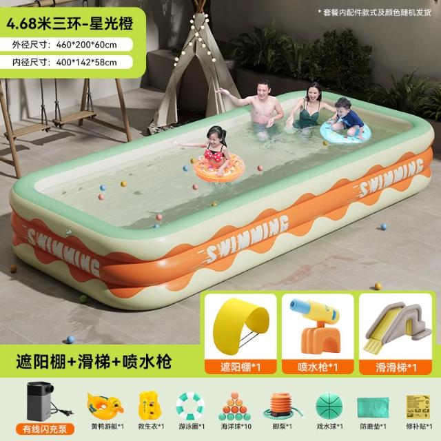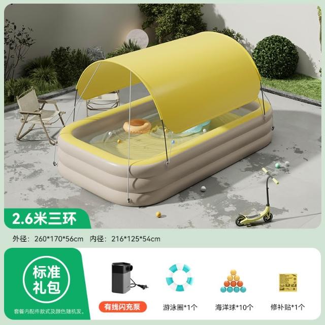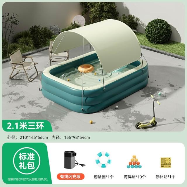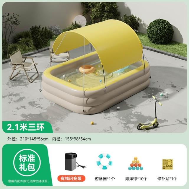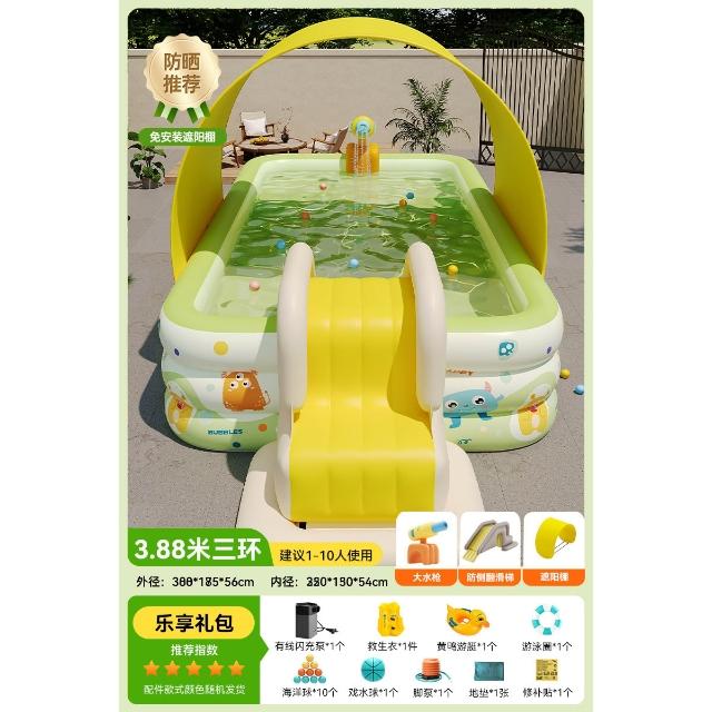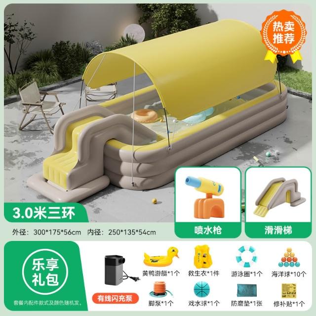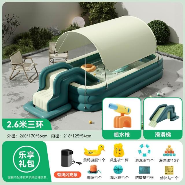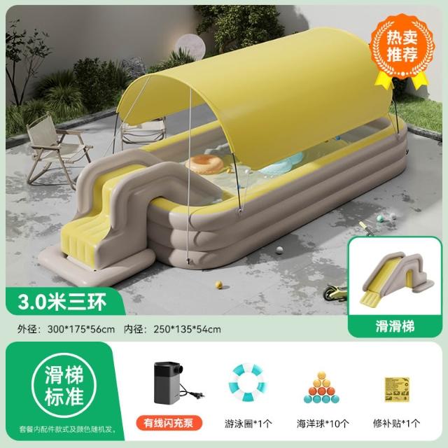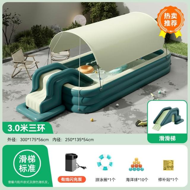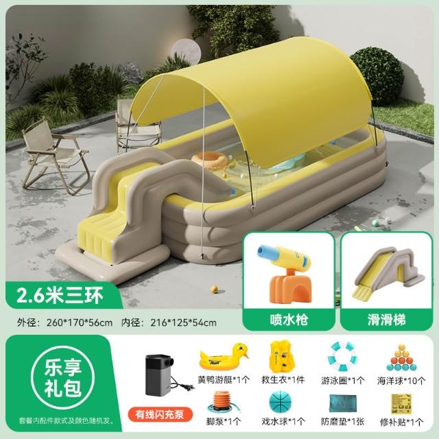 兒童游泳池家用戶外帶遮陽棚滑滑梯嬰兒寶寶可折疊大型充氣水池