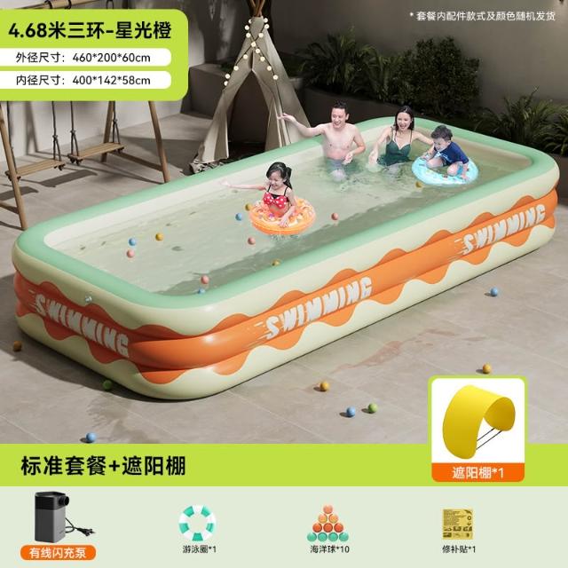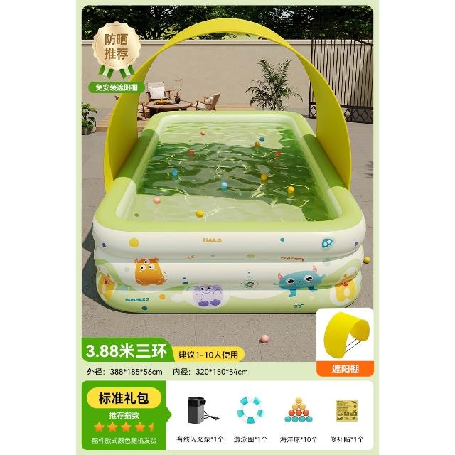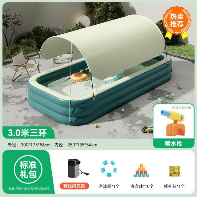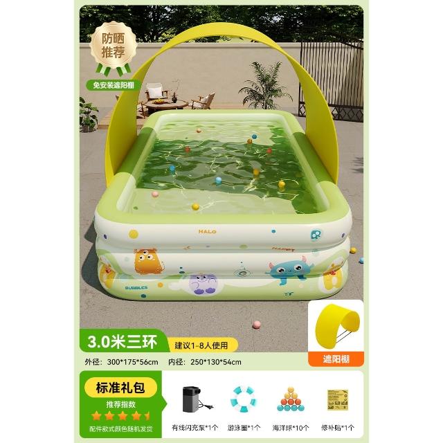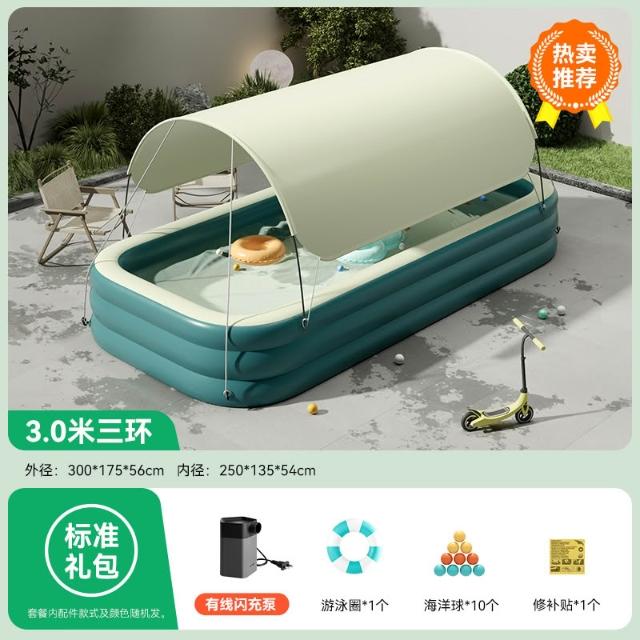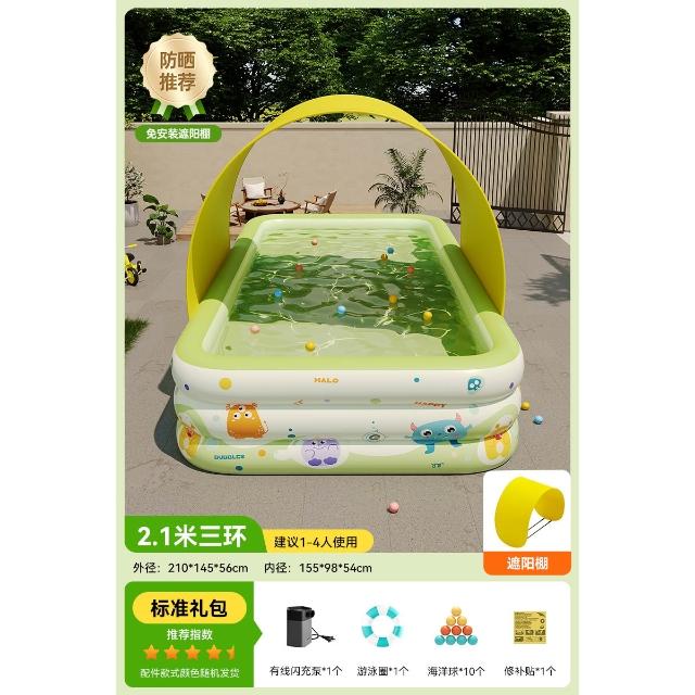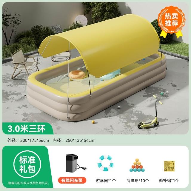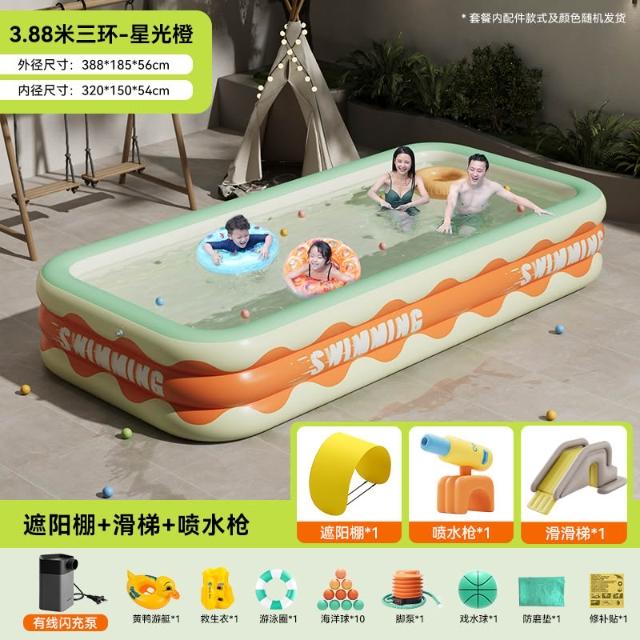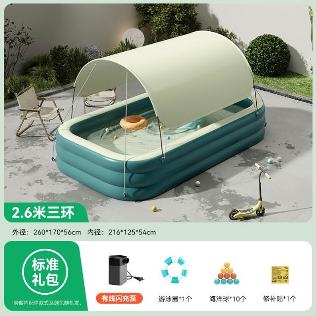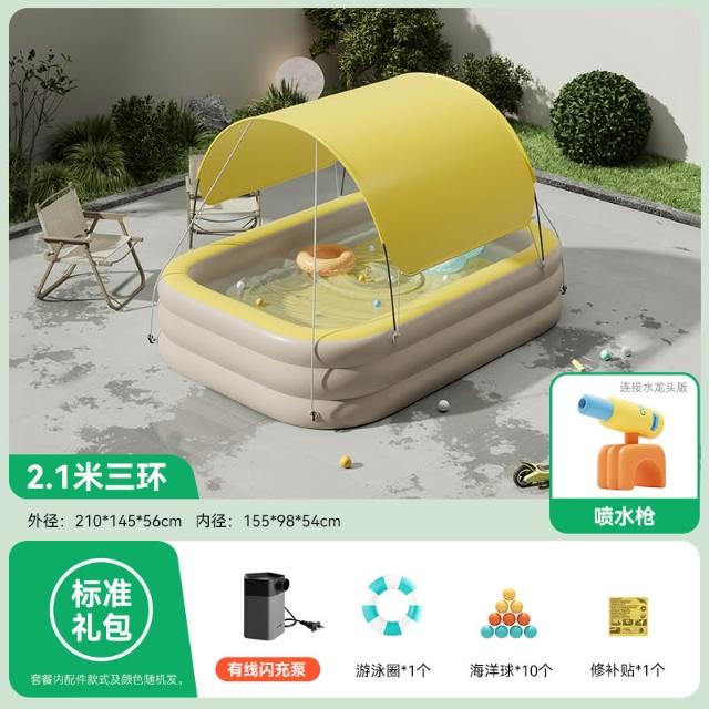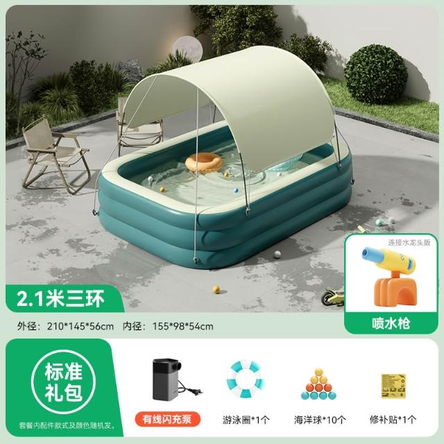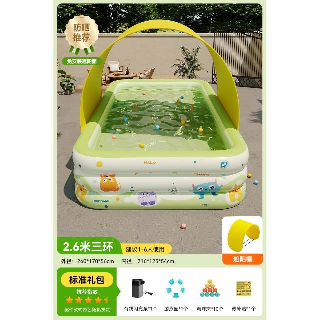 兒童游泳池家用戶外帶遮陽棚滑滑梯嬰兒寶寶可折疊大型充氣水池