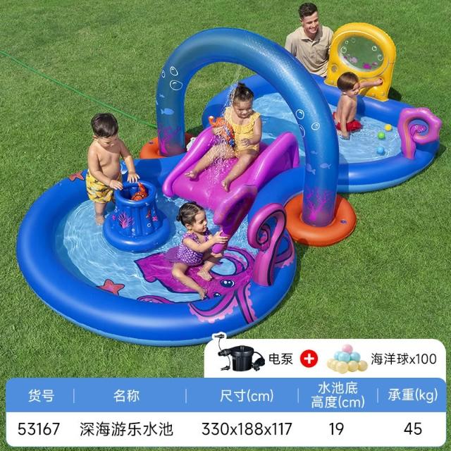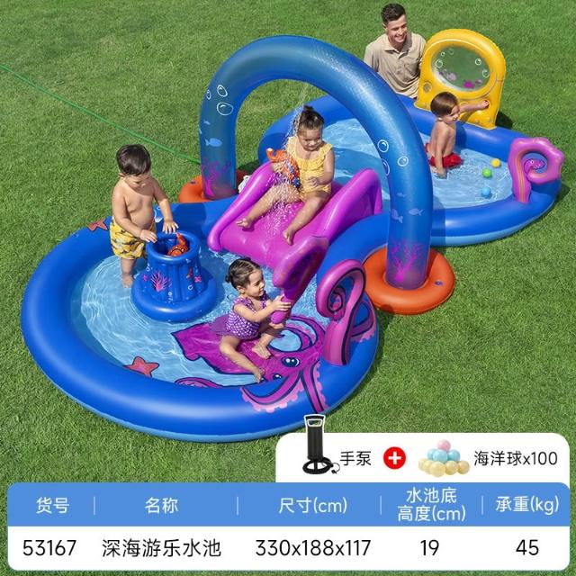 兒童充氣游泳池滑梯樂園釣魚池大型家用寶寶海洋球戲水噴水滑梯池