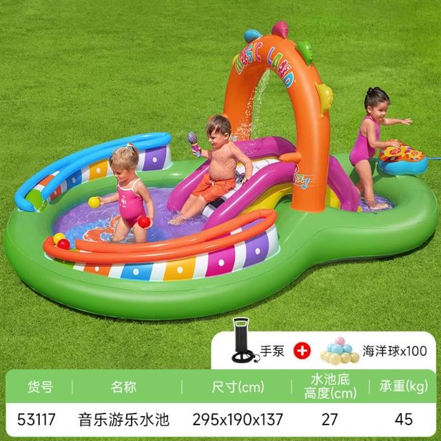 兒童充氣游泳池滑梯樂園釣魚池大型家用寶寶海洋球戲水噴水滑梯池