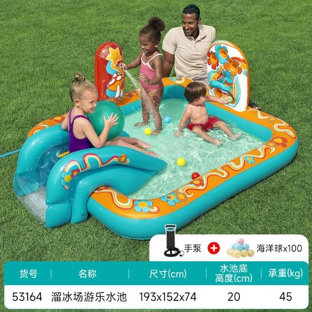 兒童充氣游泳池滑梯樂園釣魚池大型家用寶寶海洋球戲水噴水滑梯池