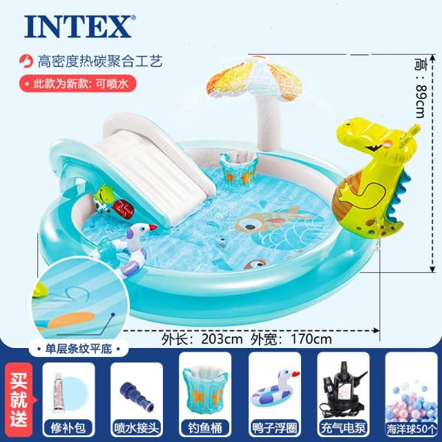 INTEX兒童滑梯游泳池戶外嬰幼兒球池沙池家用寶寶充氣噴水戲水池