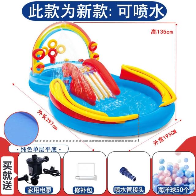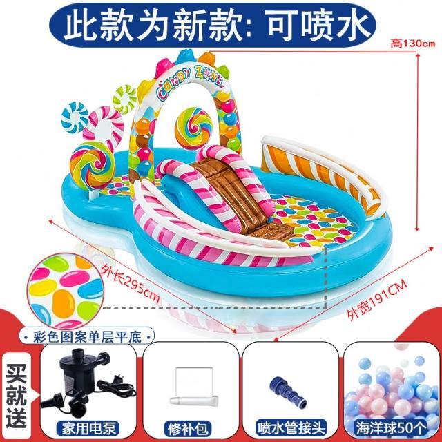 INTEX兒童滑梯游泳池戶外嬰幼兒球池沙池家用寶寶充氣噴水戲水池