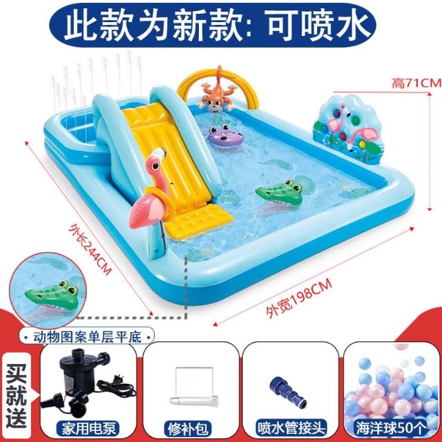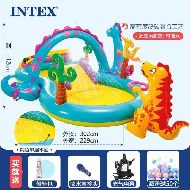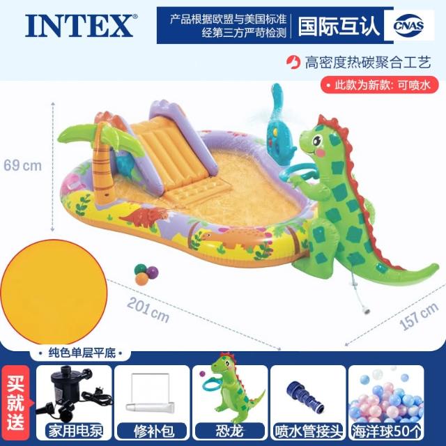INTEX兒童滑梯游泳池戶外嬰幼兒球池沙池家用寶寶充氣噴水戲水池