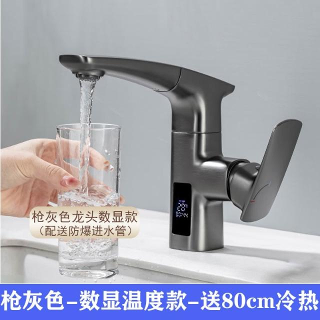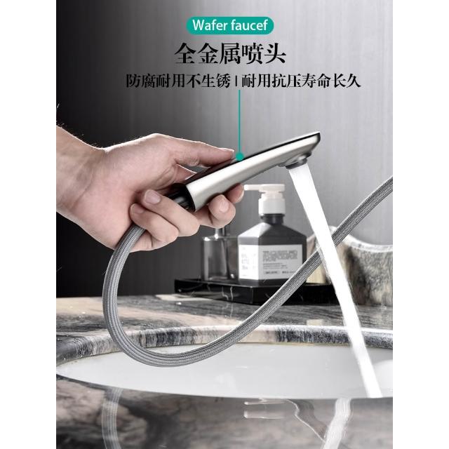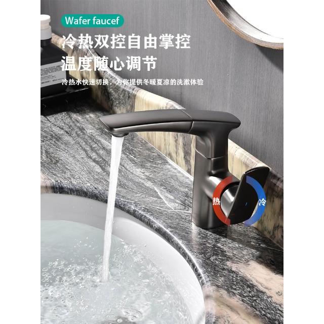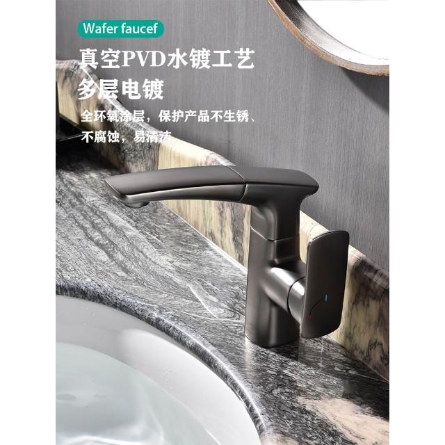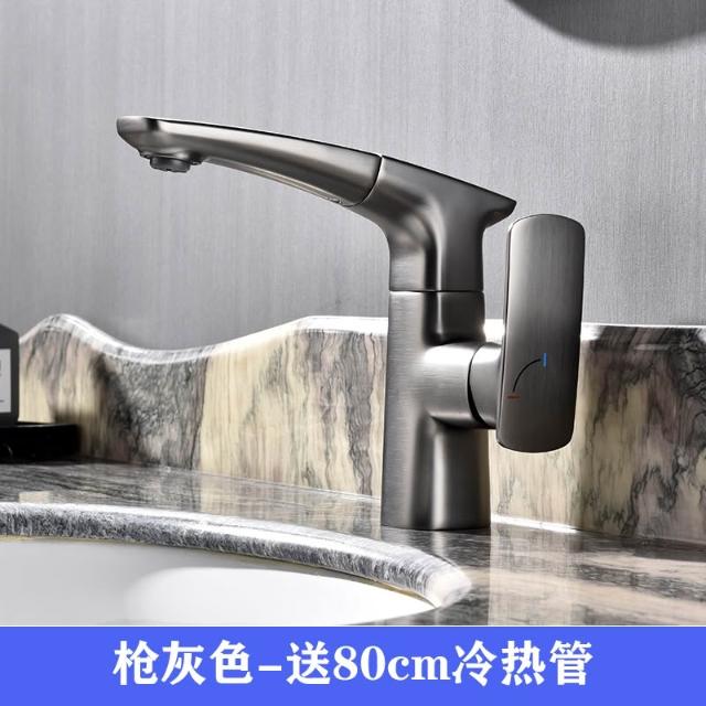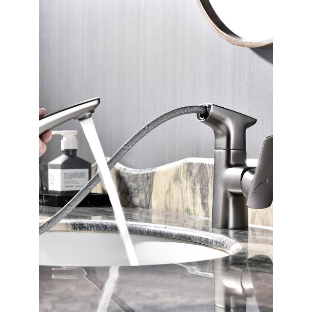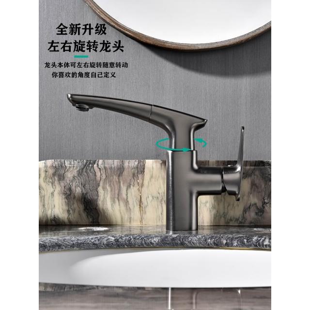 全槍灰色冷熱抽拉式銅水龍頭可旋轉浴室面盆洗手盆衛生間台下盆款