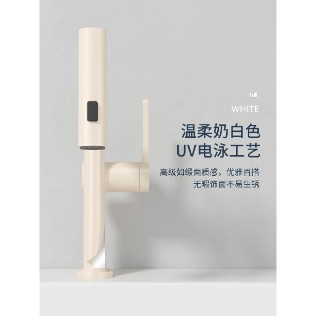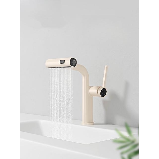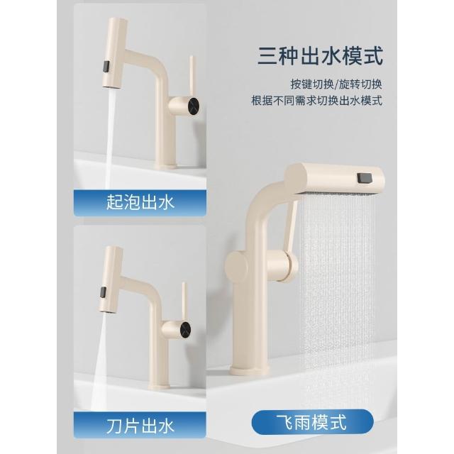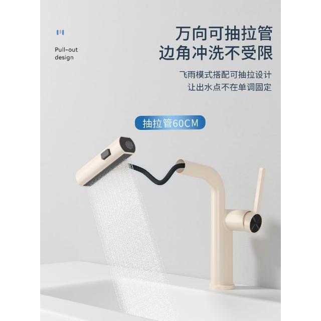 奶白色水龍頭洗臉盆抽拉式冷熱洗手盆面盆臺盆浴室衛生間飛雨瀑布
