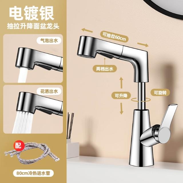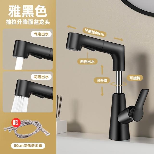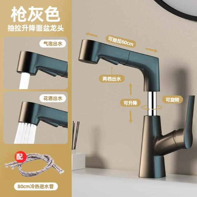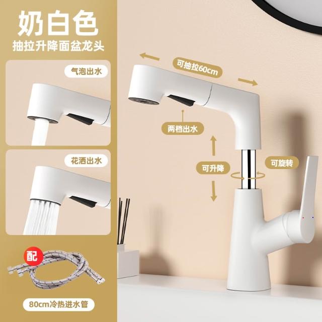 全銅冷熱水龍頭洗臉盆升降抽拉式洗手池浴室衛生間面盆臺盆水龍頭