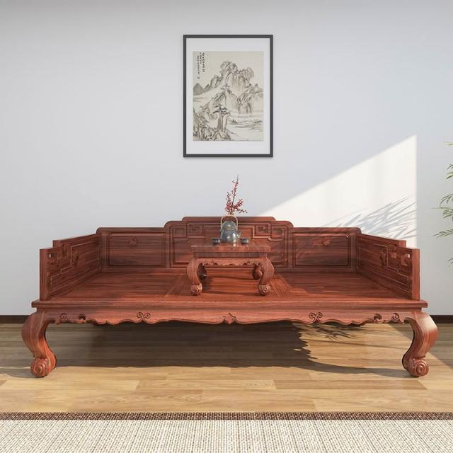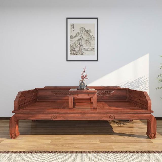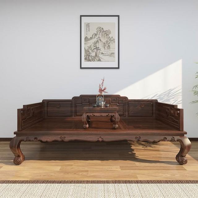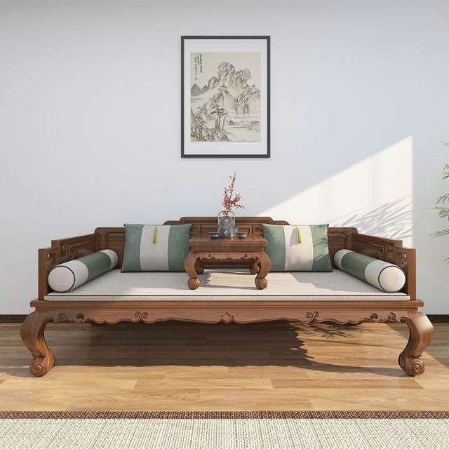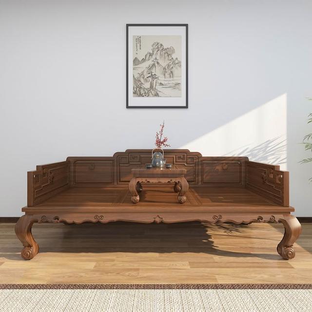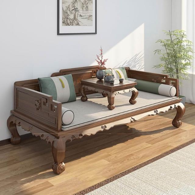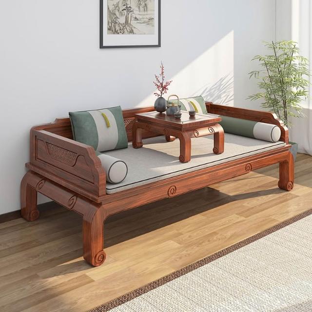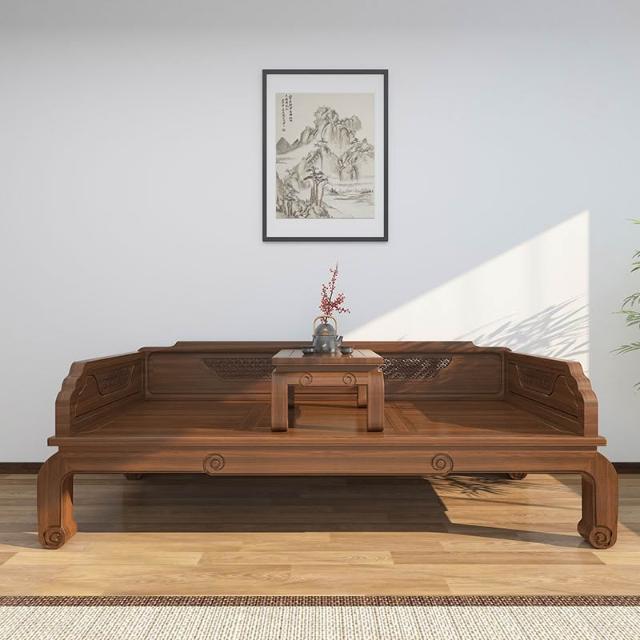 新中式羅漢床實木老榆木小戶羅漢床明清仿古榫卯結構雕花沙發床榻