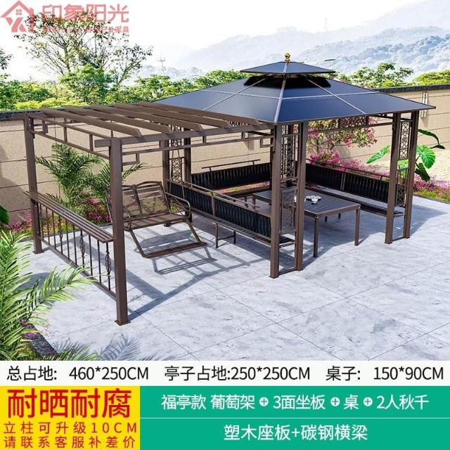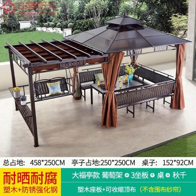 葡萄架庭院防腐木戶外亭子秋千遮陽遮雨棚碳化木塑木爬藤簡易涼亭
