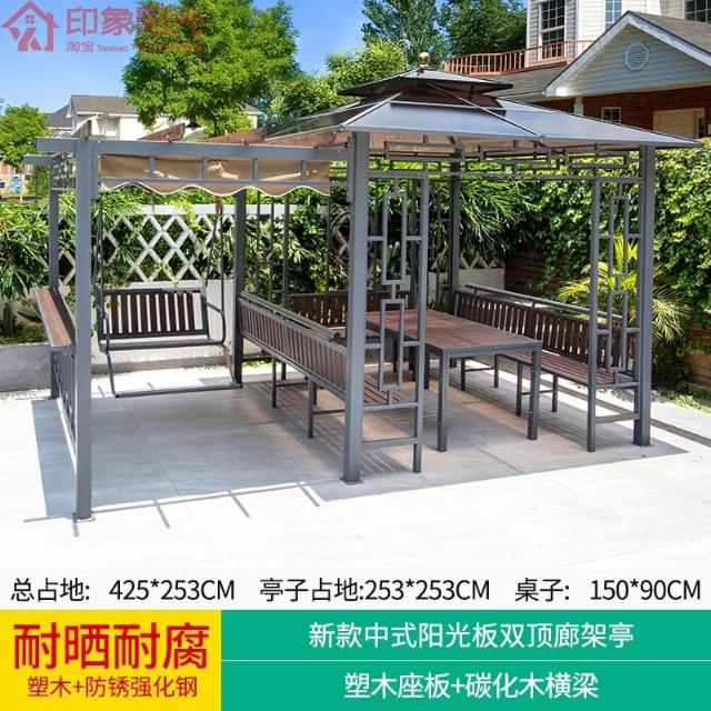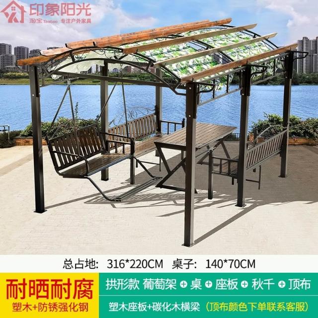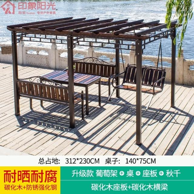 葡萄架庭院防腐木戶外亭子秋千遮陽遮雨棚碳化木塑木爬藤簡易涼亭
