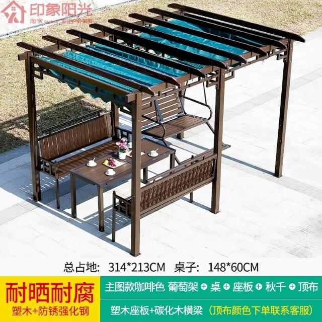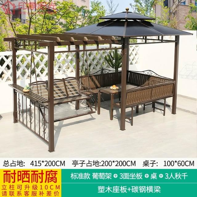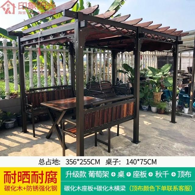 葡萄架庭院防腐木戶外亭子秋千遮陽遮雨棚碳化木塑木爬藤簡易涼亭