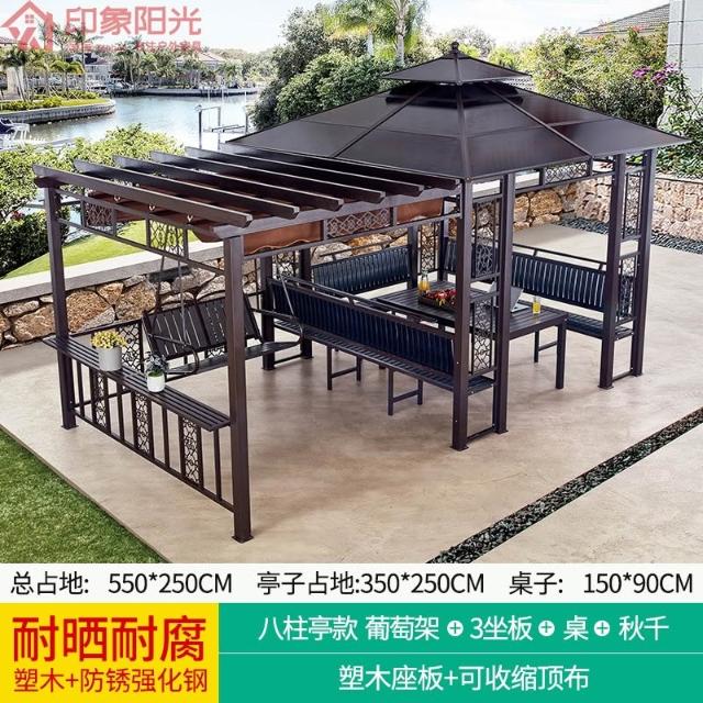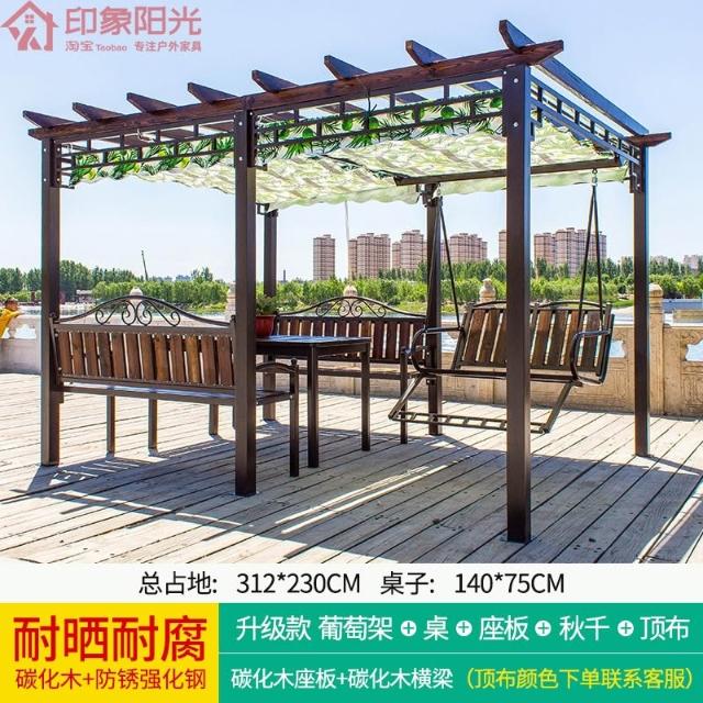葡萄架庭院防腐木戶外亭子秋千遮陽遮雨棚碳化木塑木爬藤簡易涼亭