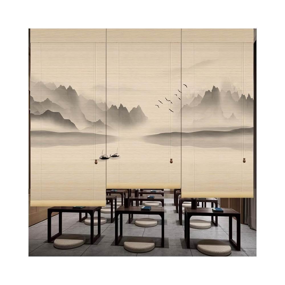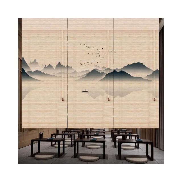 竹簾卷簾窗簾門簾隔斷印花新中日式遮陽禪意定制茶室陽臺山水掛畫