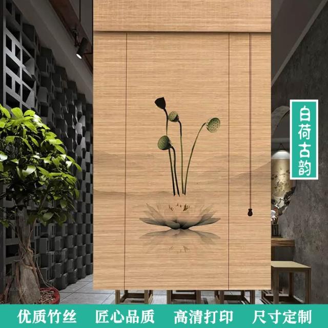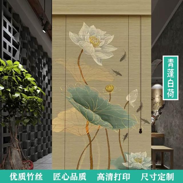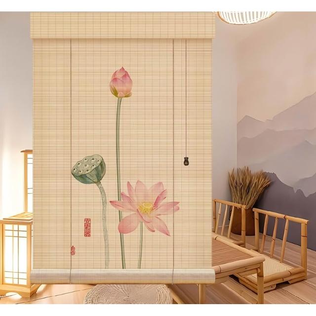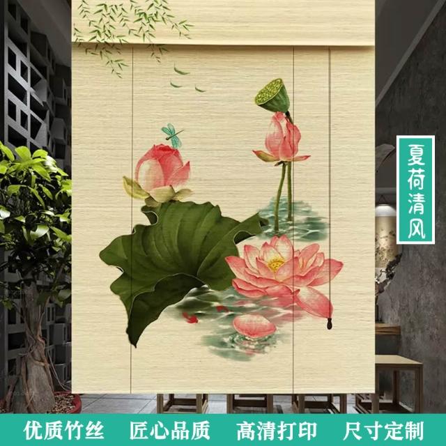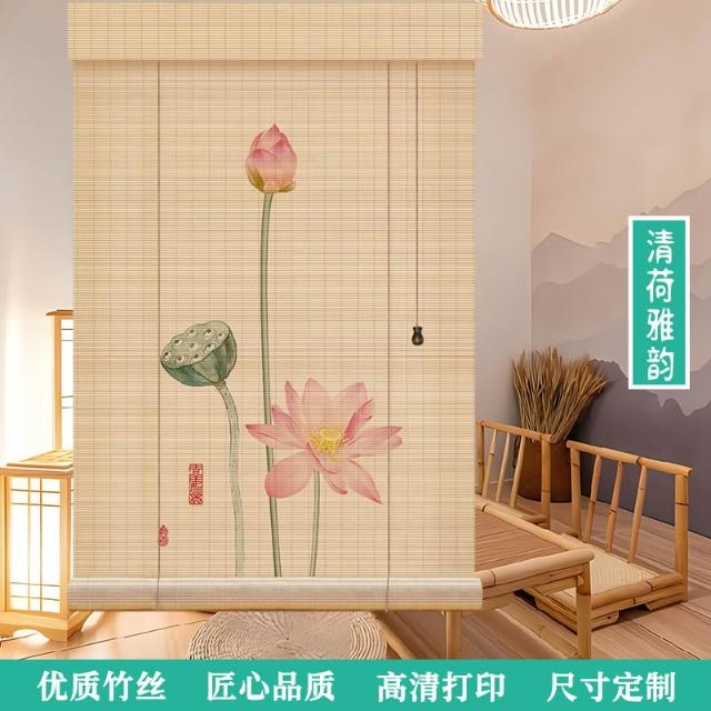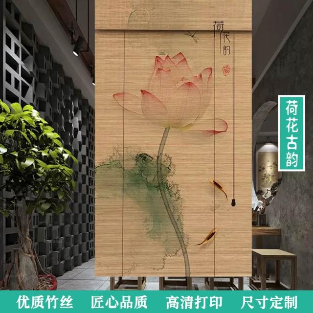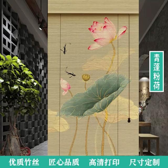 中式荷花竹簾卷簾禪意復古窗簾茶室陽臺遮光遮陽簾裝飾簾子戶外簾