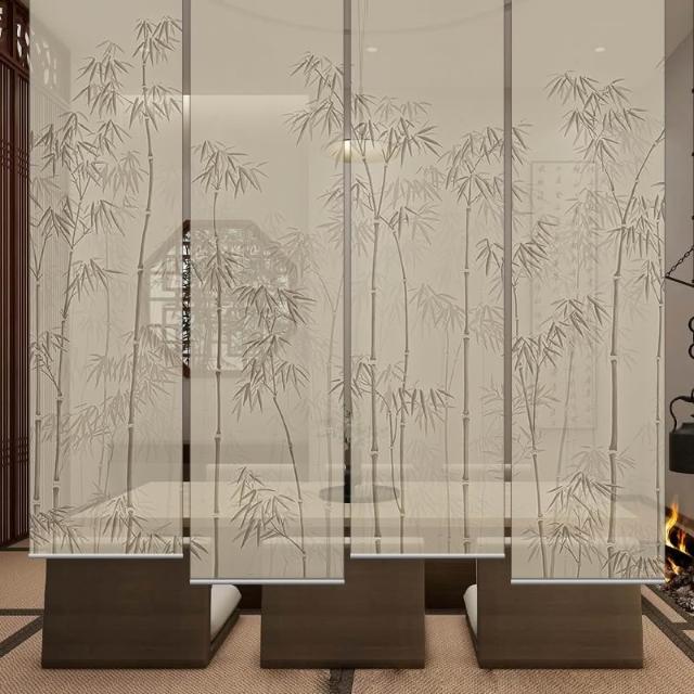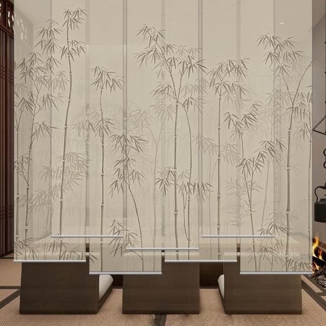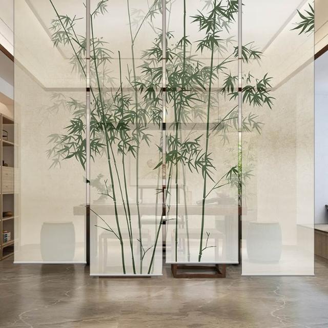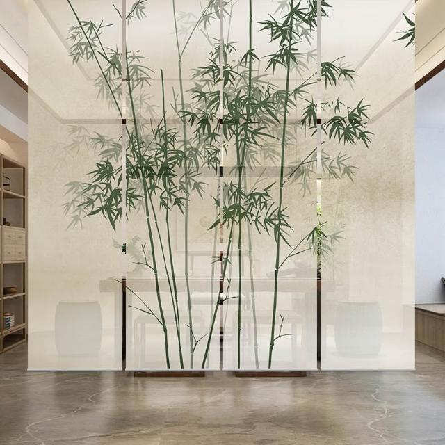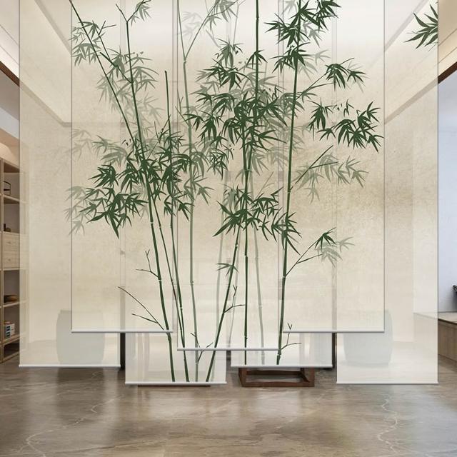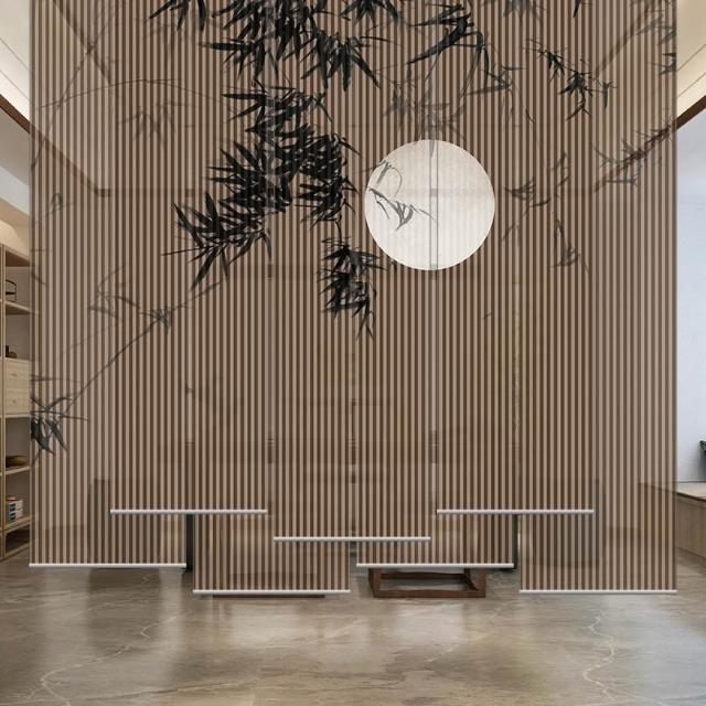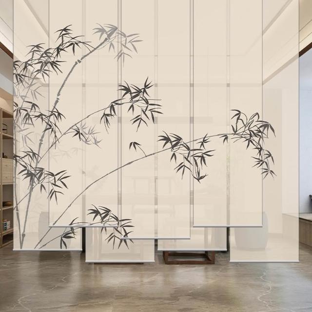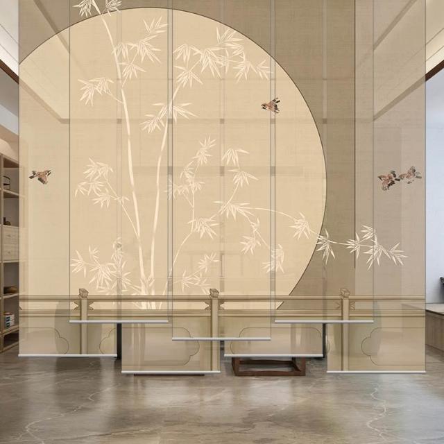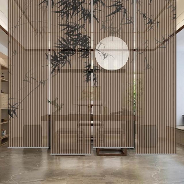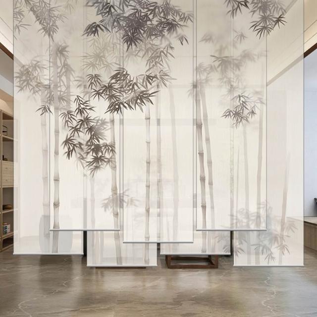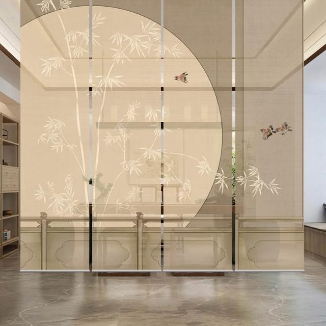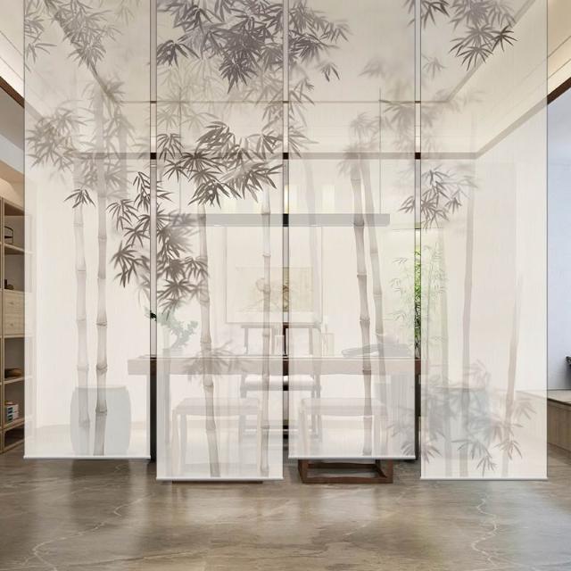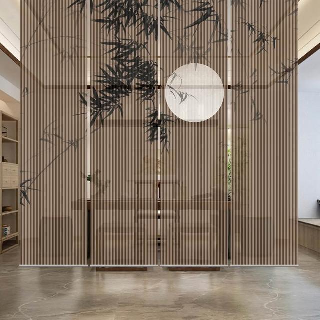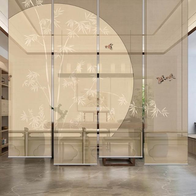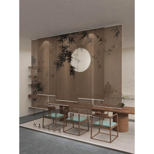 新中式屏風軟隔斷裝飾民宿客廳茶室透光竹月卷拉式升降卷簾窗簾
