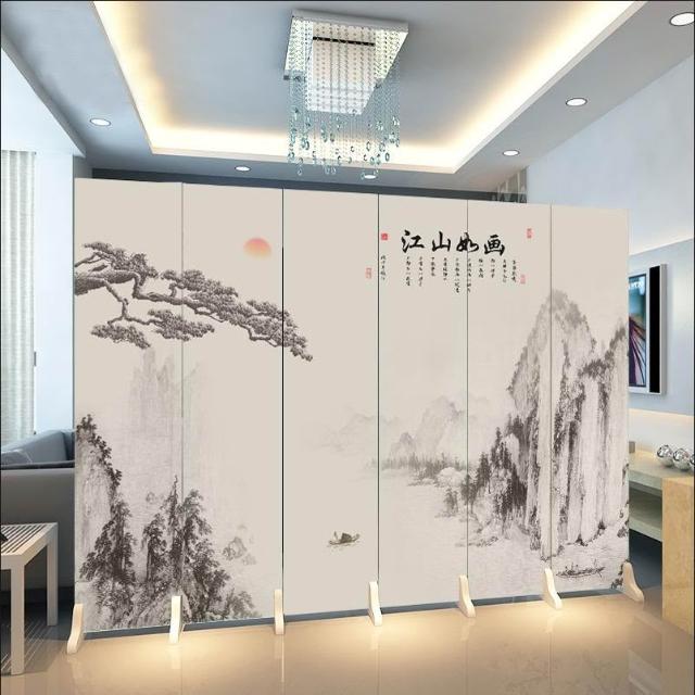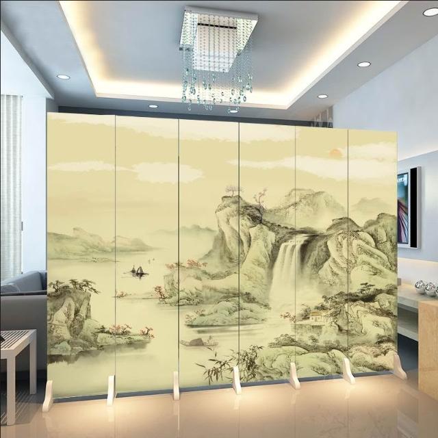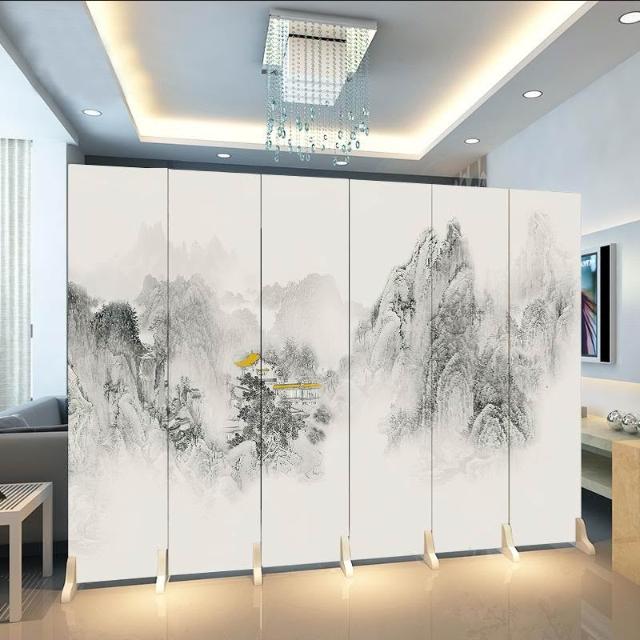 新中式屏風隔斷客廳玄關遮擋山水畫茶室辦公室遮擋可移動折疊屏風