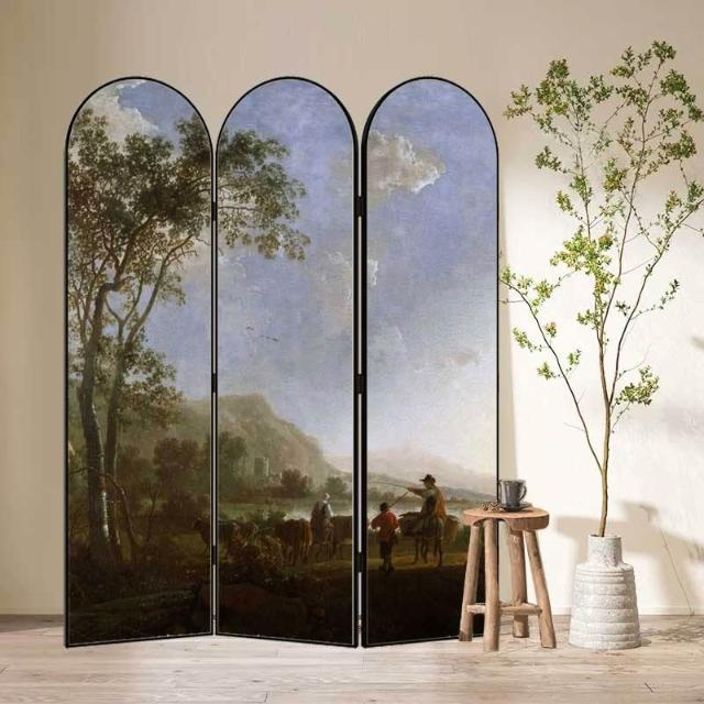弧形屏風隔斷現代簡約客廳可折疊移動玄關飯店辦公室遮擋輕奢折屏