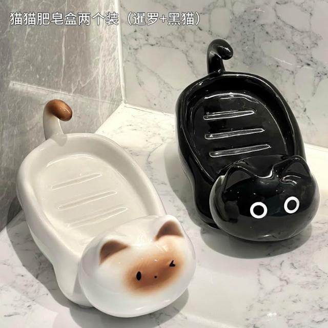 暹羅貓肥皂盒瀝水免打孔置物架可愛創意香皂盒2024新款肥皂架陶瓷